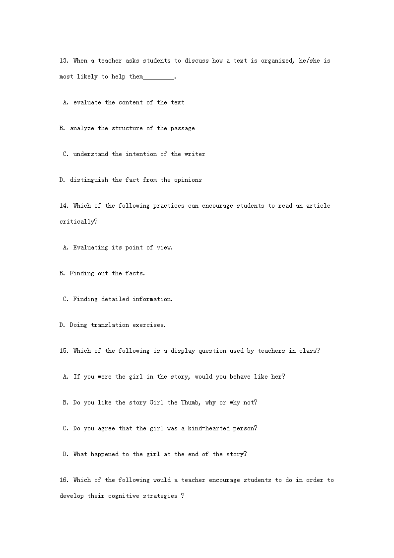 時(shí)間:2021-06-03 16:16:00 來(lái)源:無(wú)憂考網(wǎng) [字體:小 中 大]【文檔名稱】 2018上半年廣東教師資格考試初中英語(yǔ)學(xué)科知識(shí)與教學(xué)能力真題及答案(Word版).doc