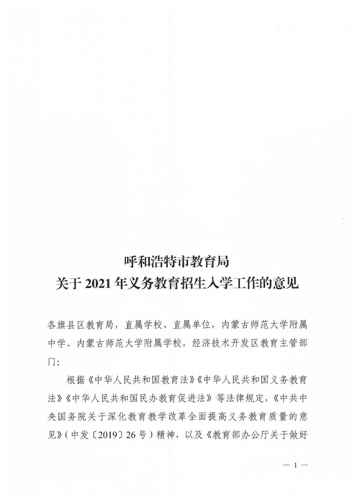 2021年內(nèi)蒙古呼和浩特義務(wù)教育招生入學(xué)工作的意見(jiàn)