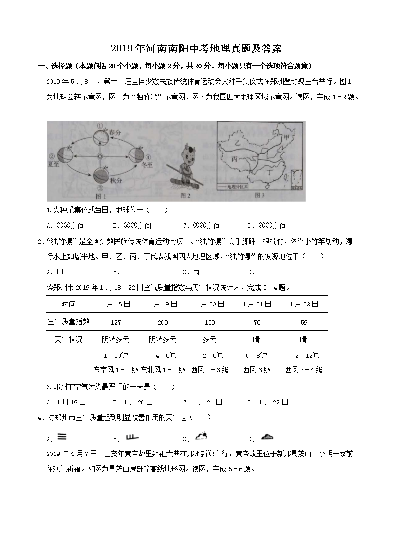 【文檔預(yù)覽】 無憂考網(wǎng)整理發(fā)布2019年河南南陽中考地理真題及答案(Word版),前五頁預(yù)覽如下: