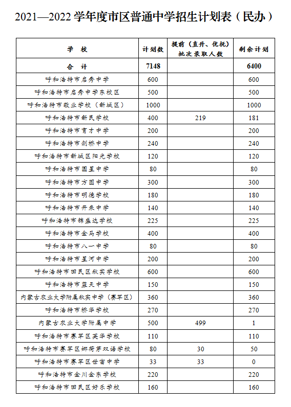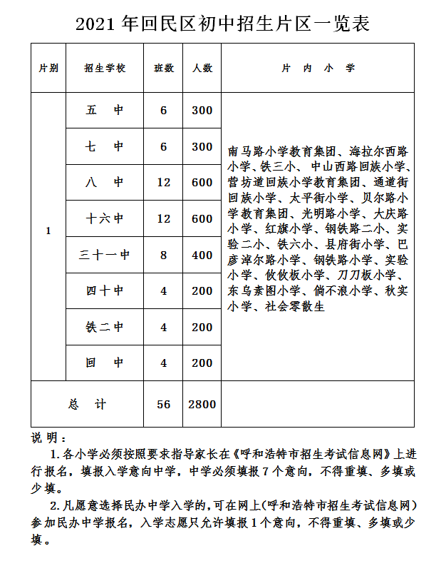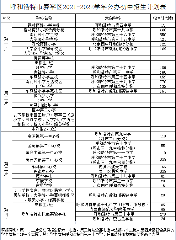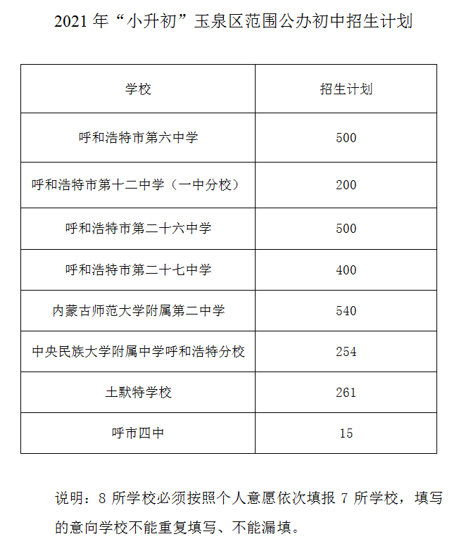 2021年內(nèi)蒙古呼和浩特小升初網(wǎng)報(bào)招生計(jì)劃