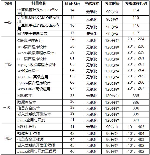 2021年起?级塚isual Basic語言程序設計(科目代碼26);2021年3月起開考三級Linux應用與開發(fā)技術(科目代碼71)和四級Linux應用與開發(fā)工程師(科目代碼46)兩個新增科目。