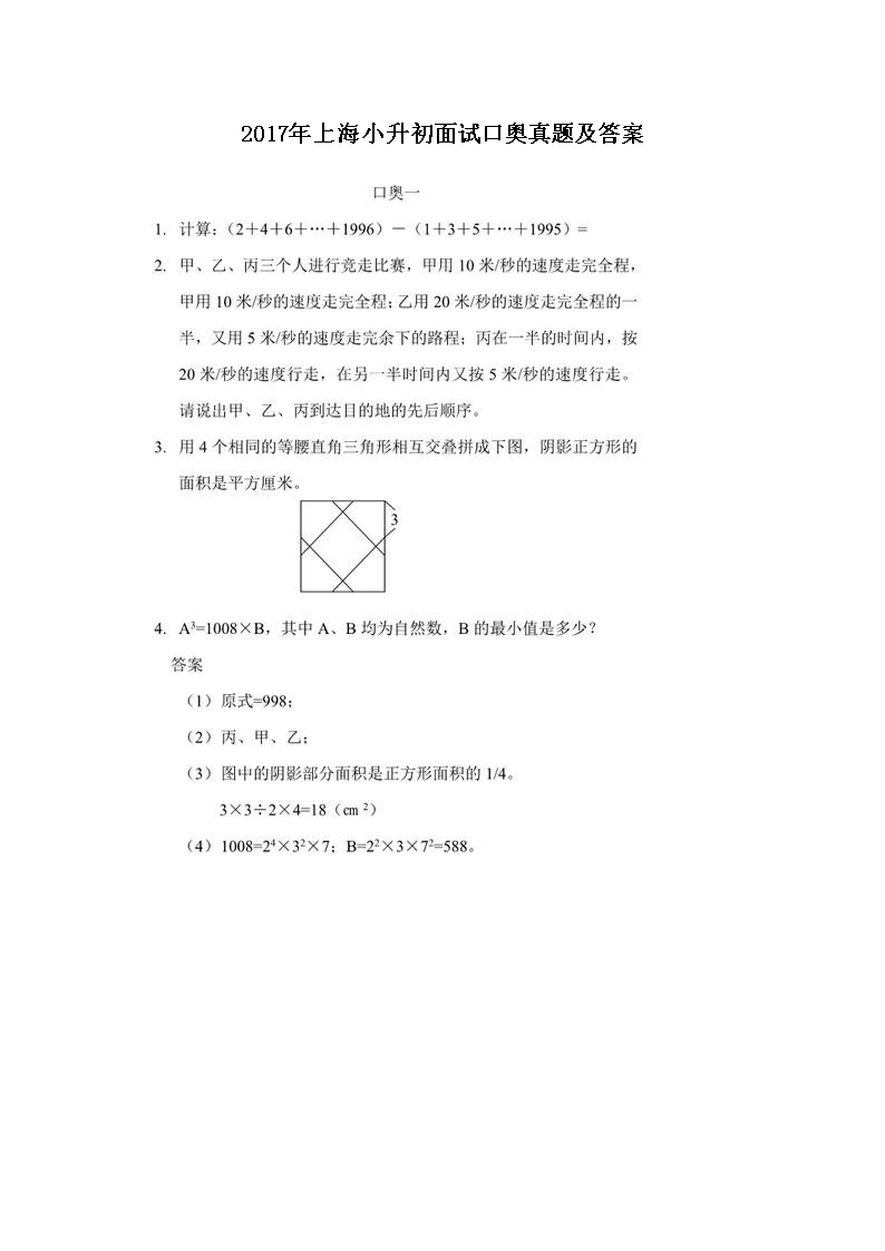 【文檔名稱】 2017年上海小升初面試口奧真題及答案(Word版).doc