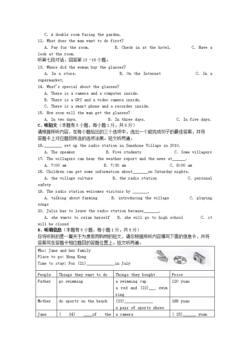 【文檔名稱】 2014廣東省汕尾市中考英語真題及答案(Word版).doc