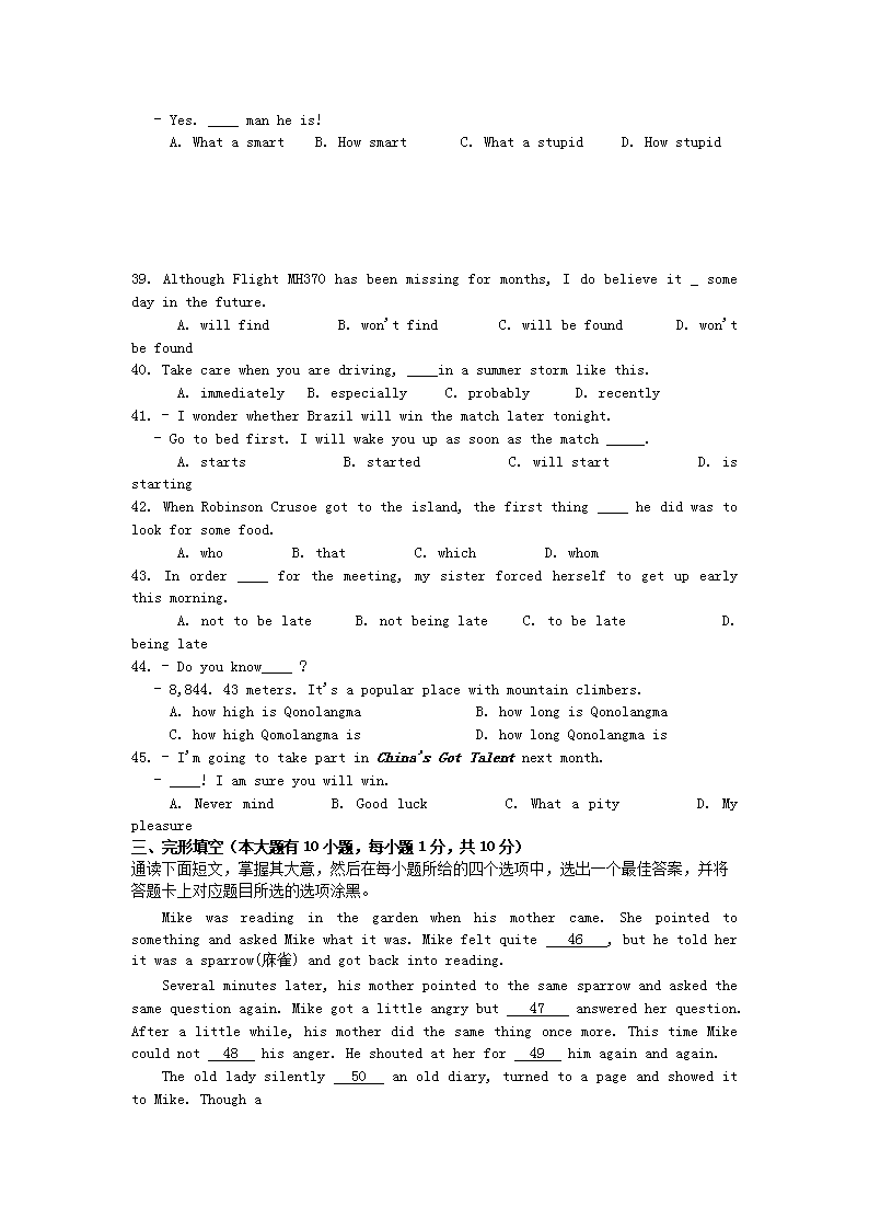 【文檔預覽】 無憂考網整理發(fā)布2014廣東省汕尾市中考英語真題及答案(Word版),前五頁預覽如下: