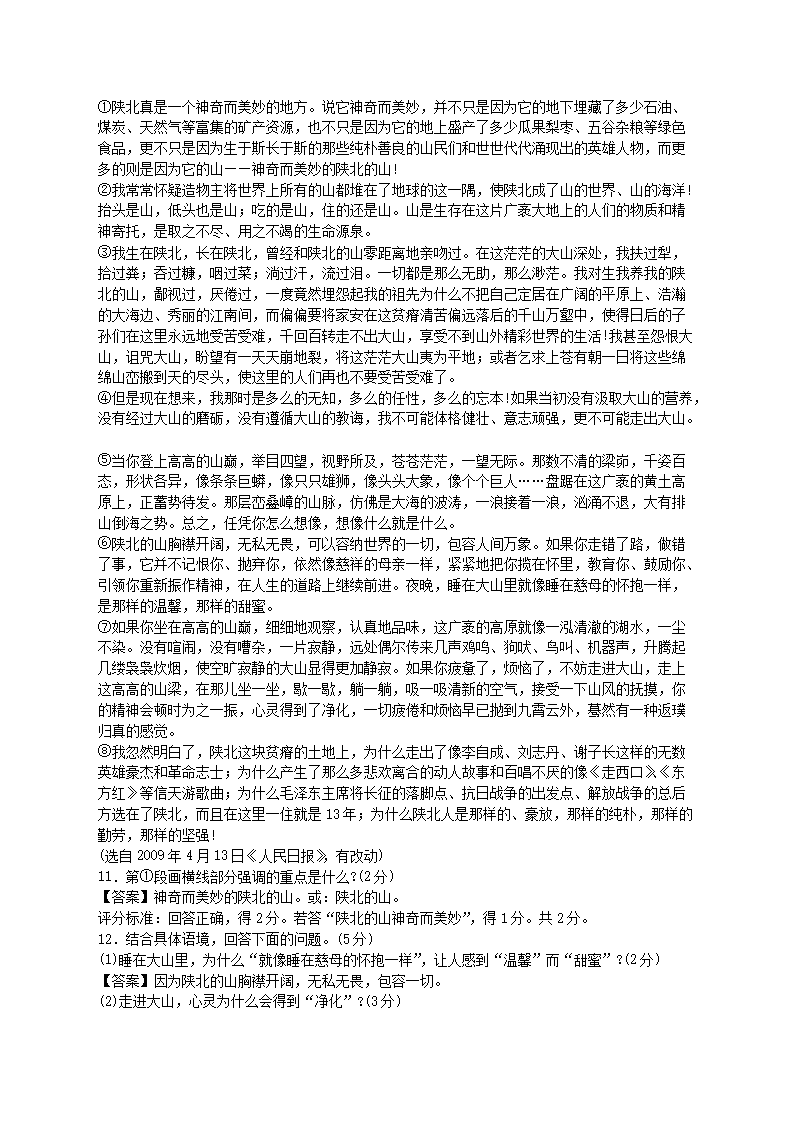 【文檔名稱】 2009年陜西省咸陽中考語文真題及答案(Word版).doc
