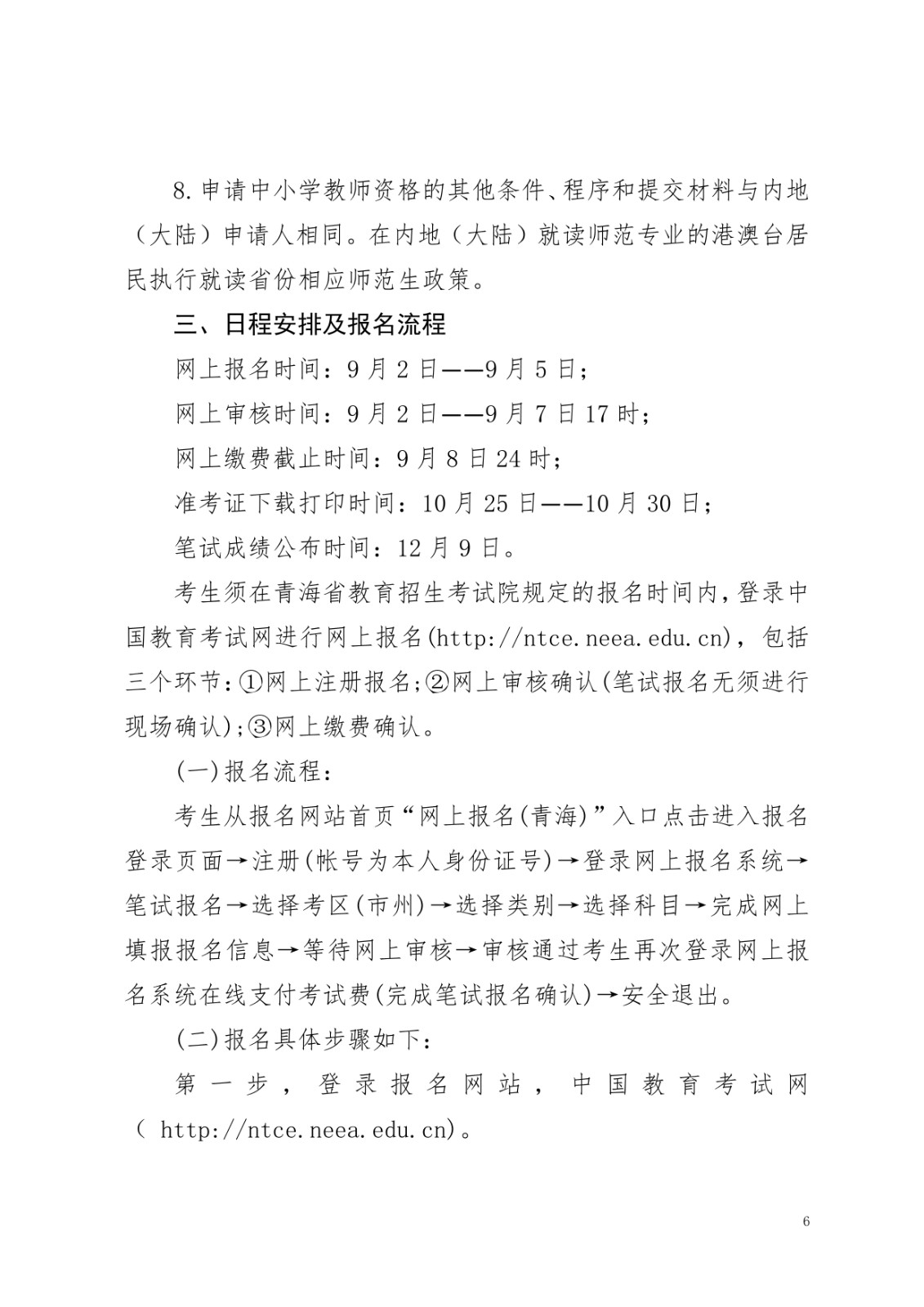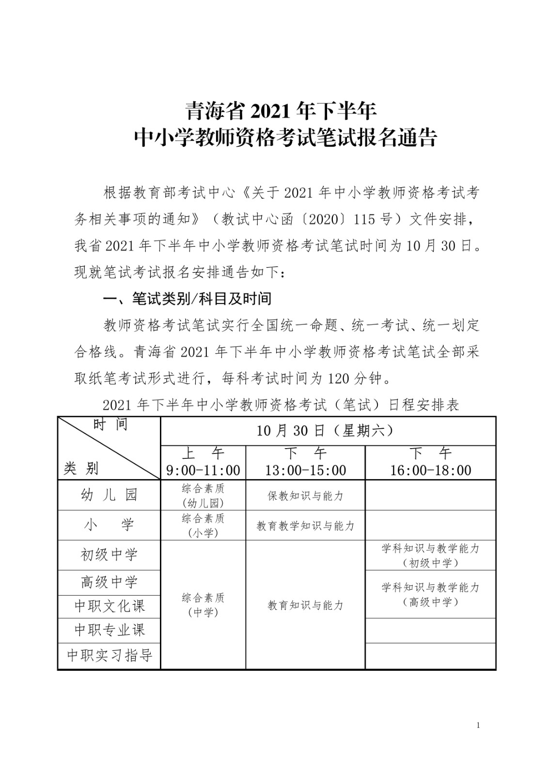網從青海教育考試網獲悉,2021年下半年青海省中小學教師資格考試筆試報名通告已公布,9月2日-9月5日進行報名,具體詳情如下: