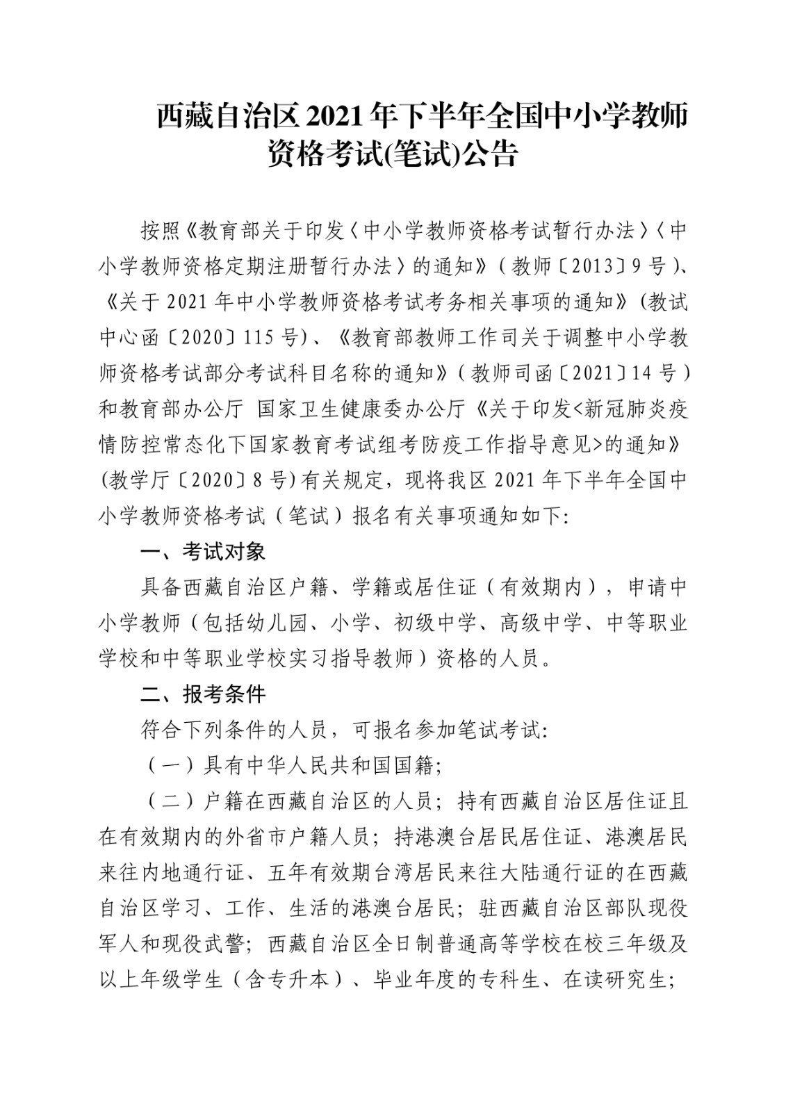 - 2025年下半年西藏中小學(xué)教師資格考試筆試報(bào)名公告(7月4日起報(bào)名)