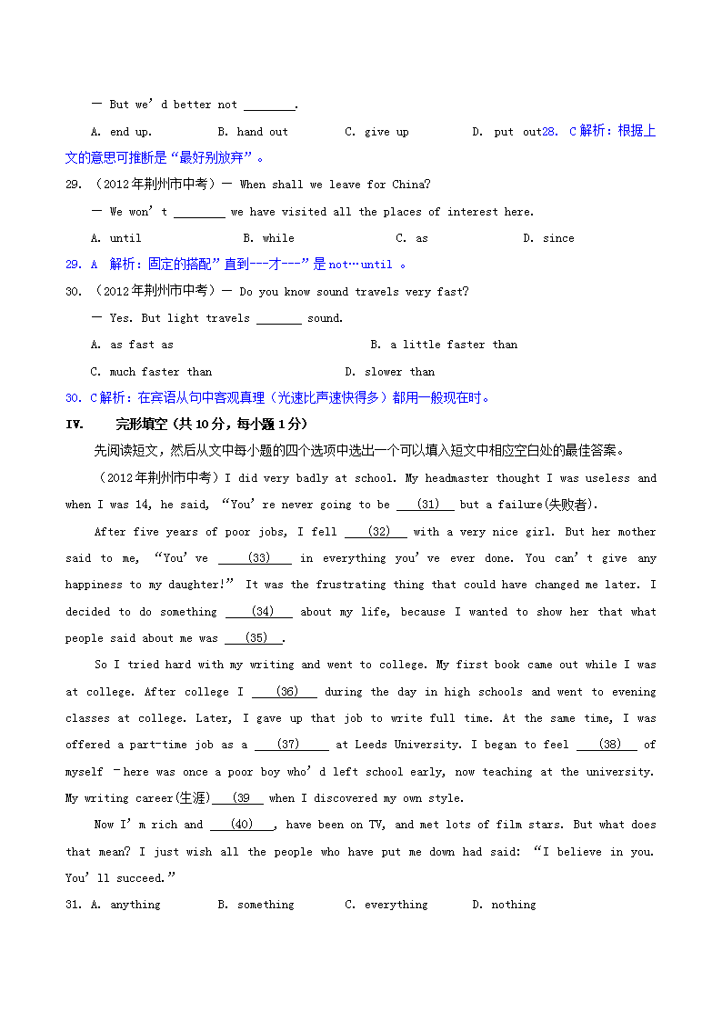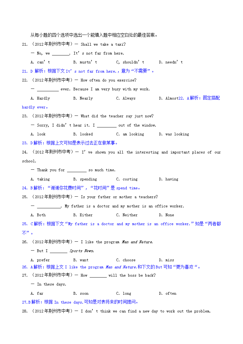 【文檔名稱】 2012年湖北省荊州市中考英語(yǔ)真題及答案(Word版).doc