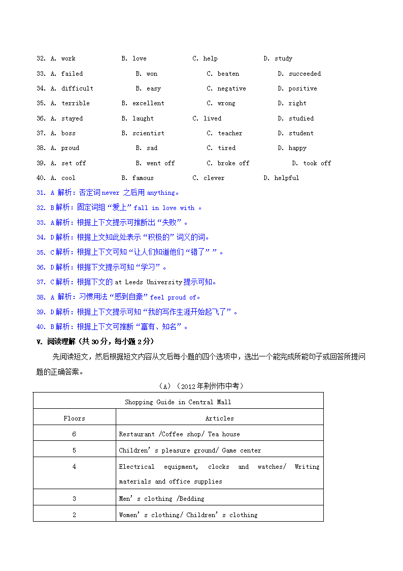【文檔預(yù)覽】 無(wú)憂考網(wǎng)整理發(fā)布2012年湖北省荊州市中考英語(yǔ)真題及答案(Word版),前五頁(yè)預(yù)覽如下: