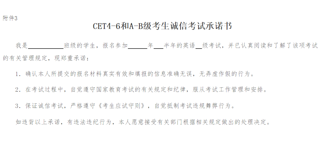 CET4-6和A-B級考生誠信考試書