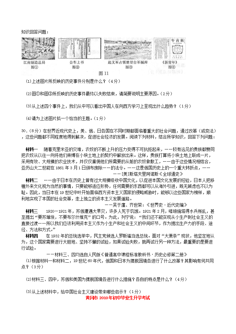 【文檔名稱】 2010年湖北省黃岡市中考?xì)v史真題及答案(Word版).doc