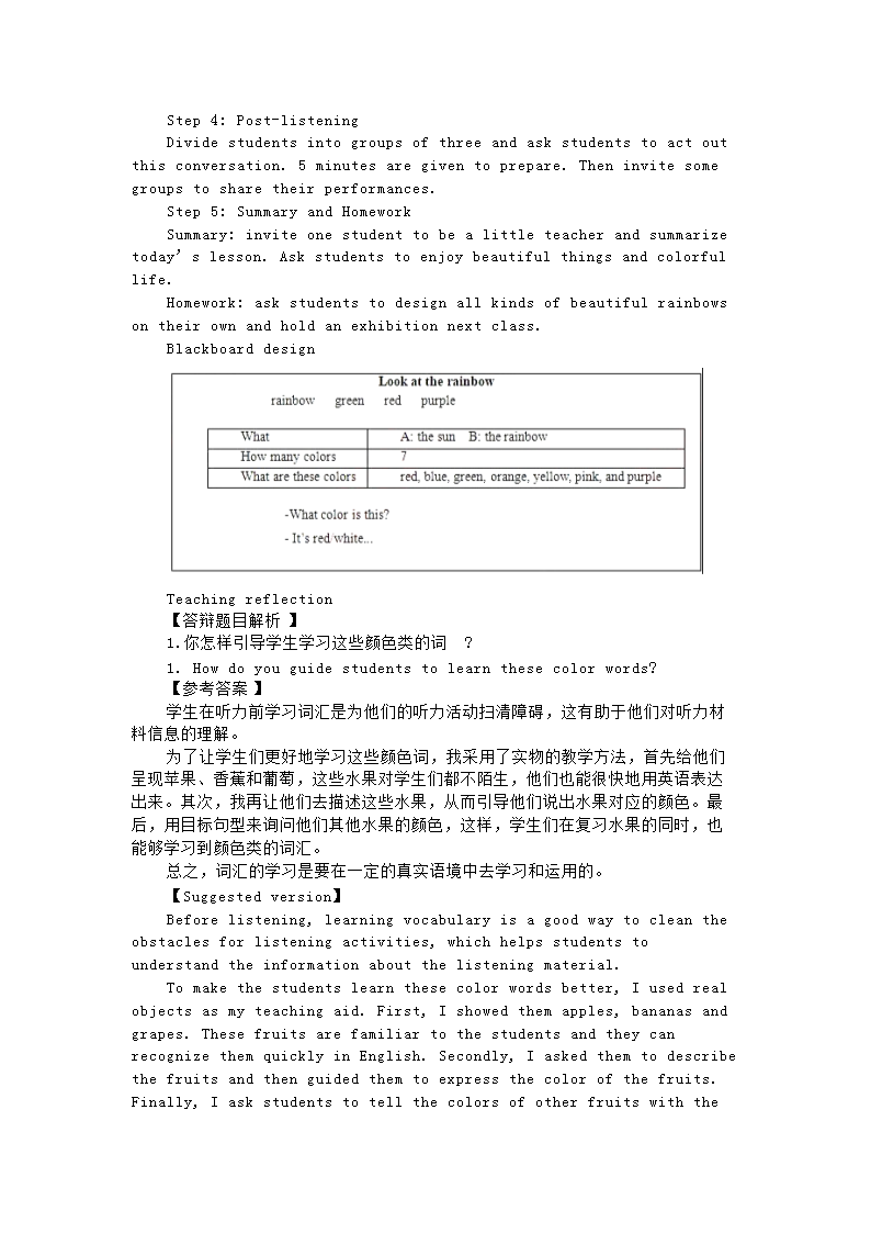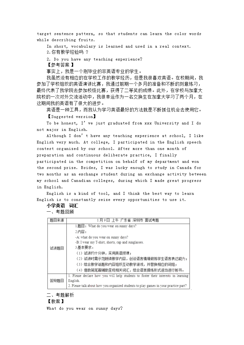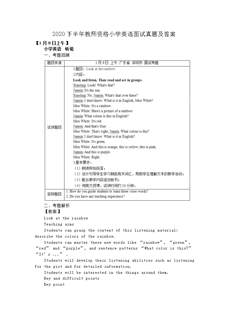 【文檔名稱】 2020下半年教師資格小學(xué)英語面試真題及答案(Word版).doc
