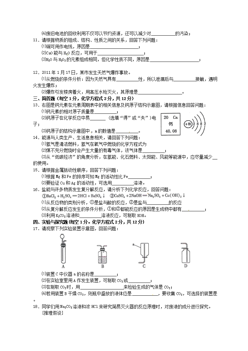 【文檔名稱】 2011年吉林吉林市中考化學(xué)真題及答案(Word版).doc