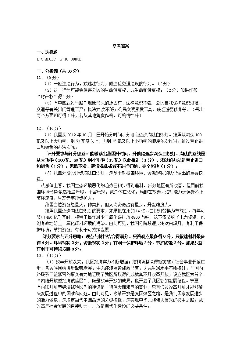 【文檔預(yù)覽】 無憂考網(wǎng)整理發(fā)布2013年寧夏固原中考道德與法治真題及答案(Word版),前五頁(yè)預(yù)覽如下: