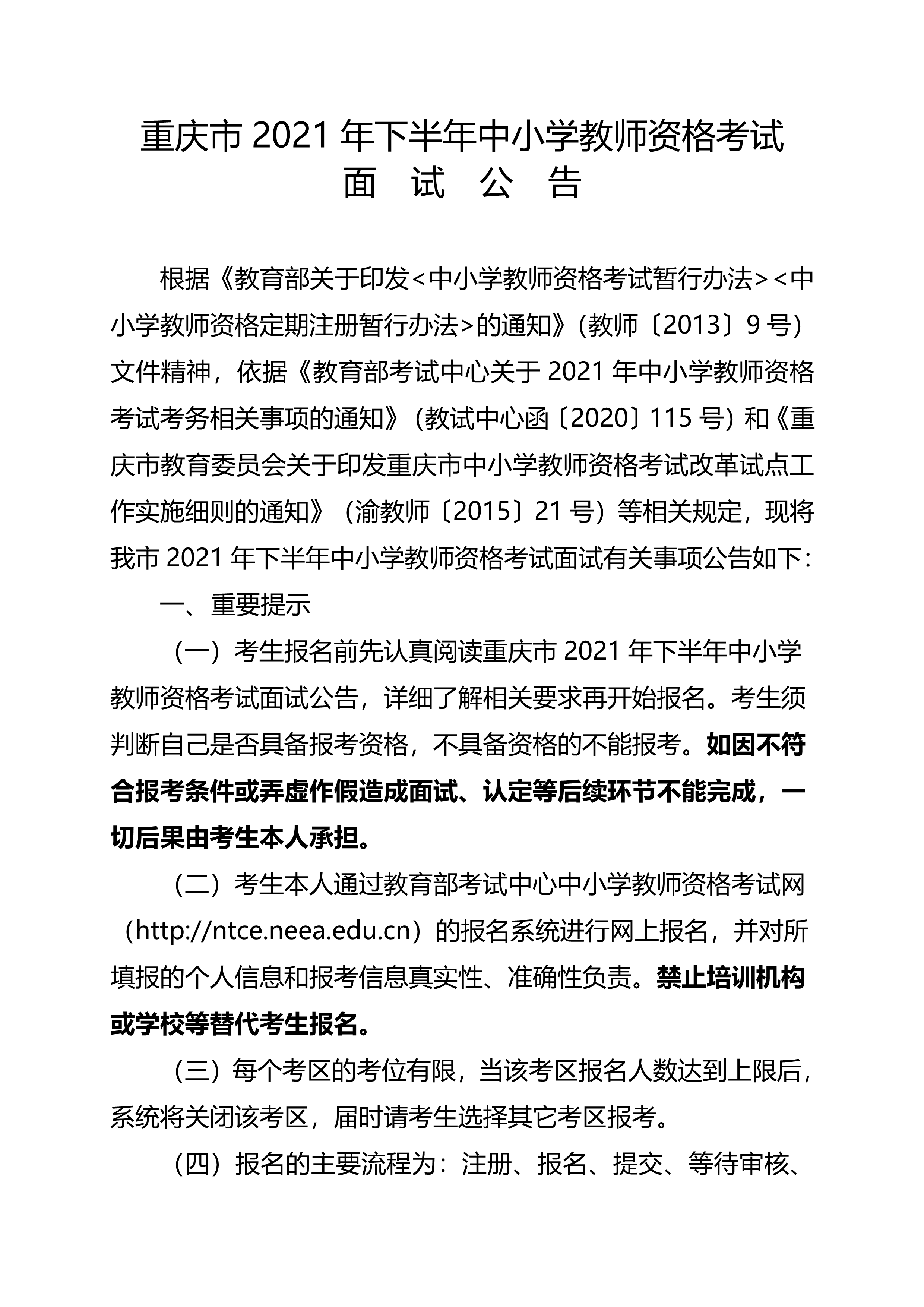 - 2025下半年重慶中小學(xué)教師資格考試面試公告(11月7日-10日?qǐng)?bào)名)