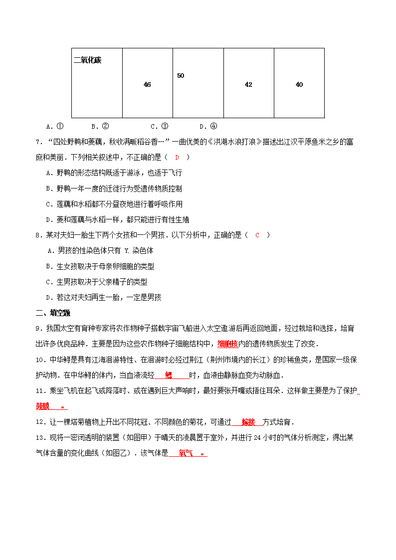 【文檔名稱】 2014年湖北省荊州市中考生物真題及答案(Word版).doc
