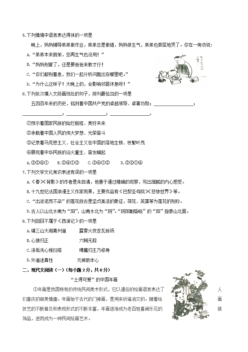 【文檔名稱】 2019年廣西北海市中考語(yǔ)文真題及答案(Word版).doc