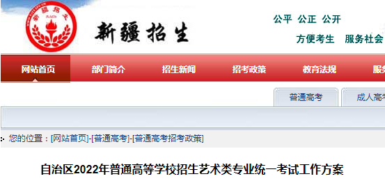 新疆2022年普通高等學(xué)校招生藝術(shù)類專業(yè)統(tǒng)一考試工作方案