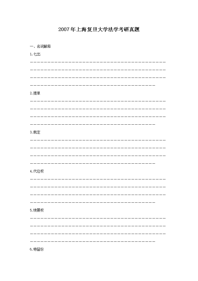 【文檔預(yù)覽】 無憂考網(wǎng)整理發(fā)布2007年上海復(fù)旦大學(xué)法學(xué)考研真題(Word版),前五頁預(yù)覽如下: