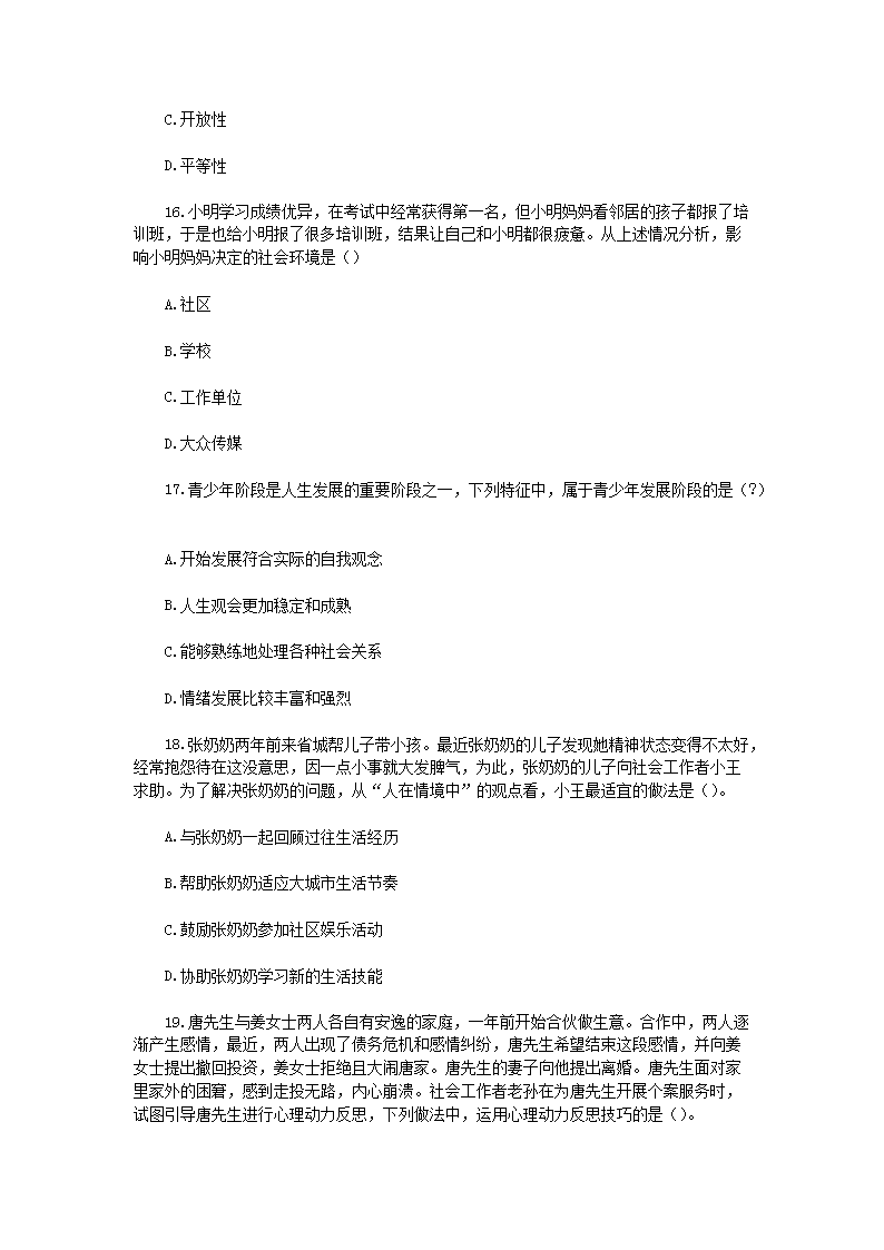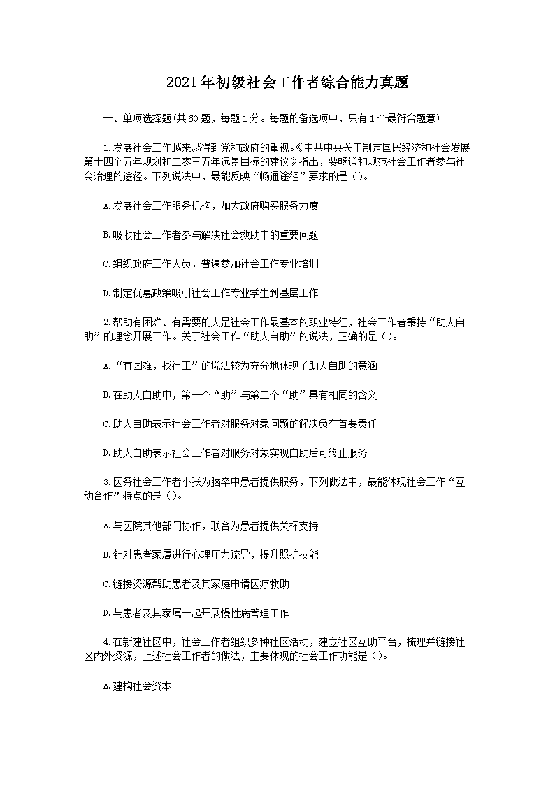【文檔名稱】 2021年初級社會工作者綜合能力真題(Word版).doc