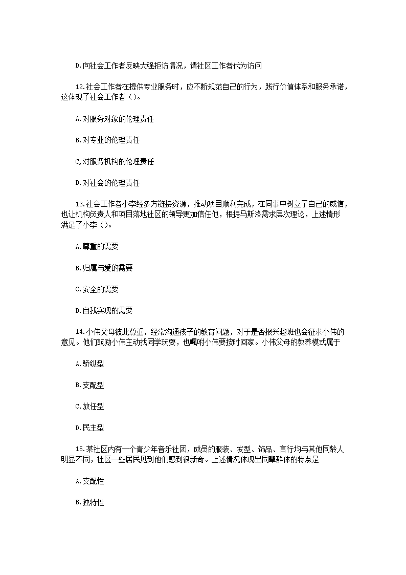 【文檔預(yù)覽】 無憂考網(wǎng)整理發(fā)布2021年初級社會工作者綜合能力真題(Word版),前五頁預(yù)覽如下: