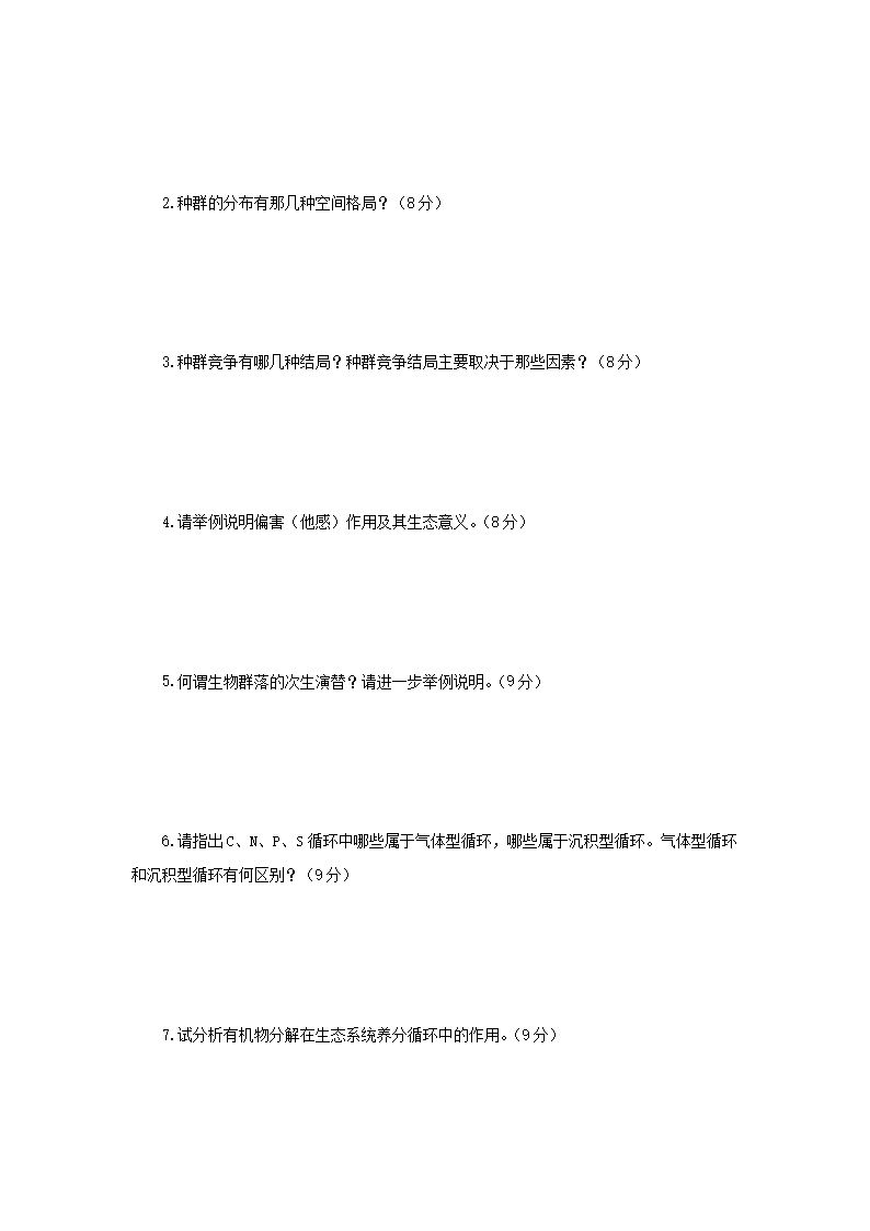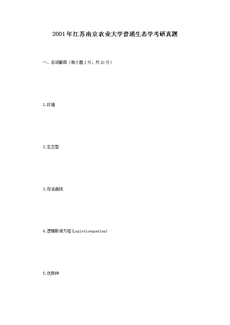 2001年江蘇南京農(nóng)業(yè)大學(xué)普通生態(tài)學(xué)考研真題(Word版)