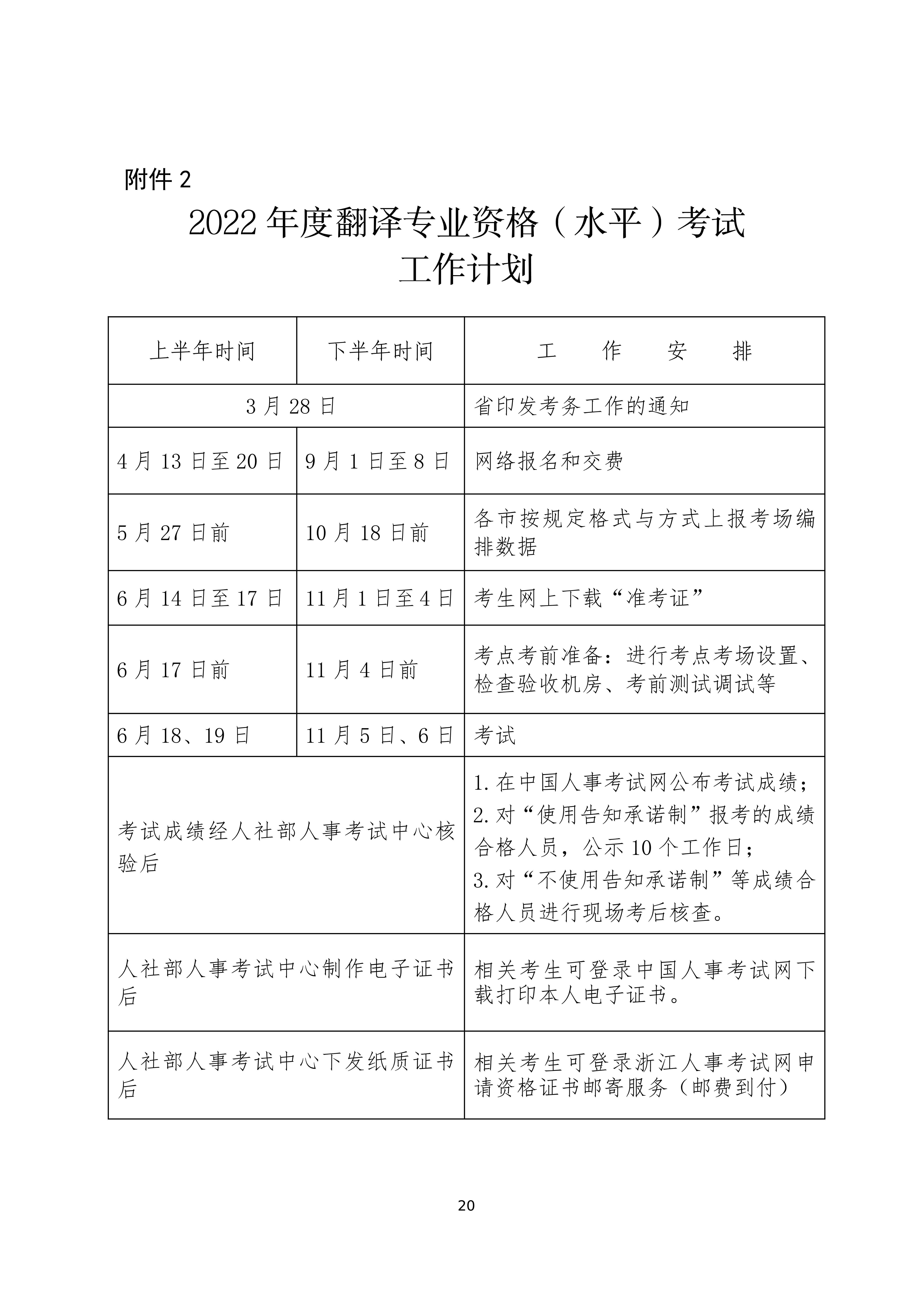 【#英語翻譯資格考試# #2022年浙江翻譯專業(yè)資格(水平)考試考務(wù)工作的通知#】©無憂考網(wǎng)從浙江人事考試網(wǎng)獲悉,2022年浙江翻譯專業(yè)資格(水平)考試考務(wù)工作的通知已公布,上半年報(bào)名時(shí)間為4月13日-4月20日,下半年報(bào)名時(shí)間為9月1日-9月8日,上半年考試時(shí)間為6月18日-6月19日,下半年考試時(shí)間為11月5日-11月6日,具體詳情如下: