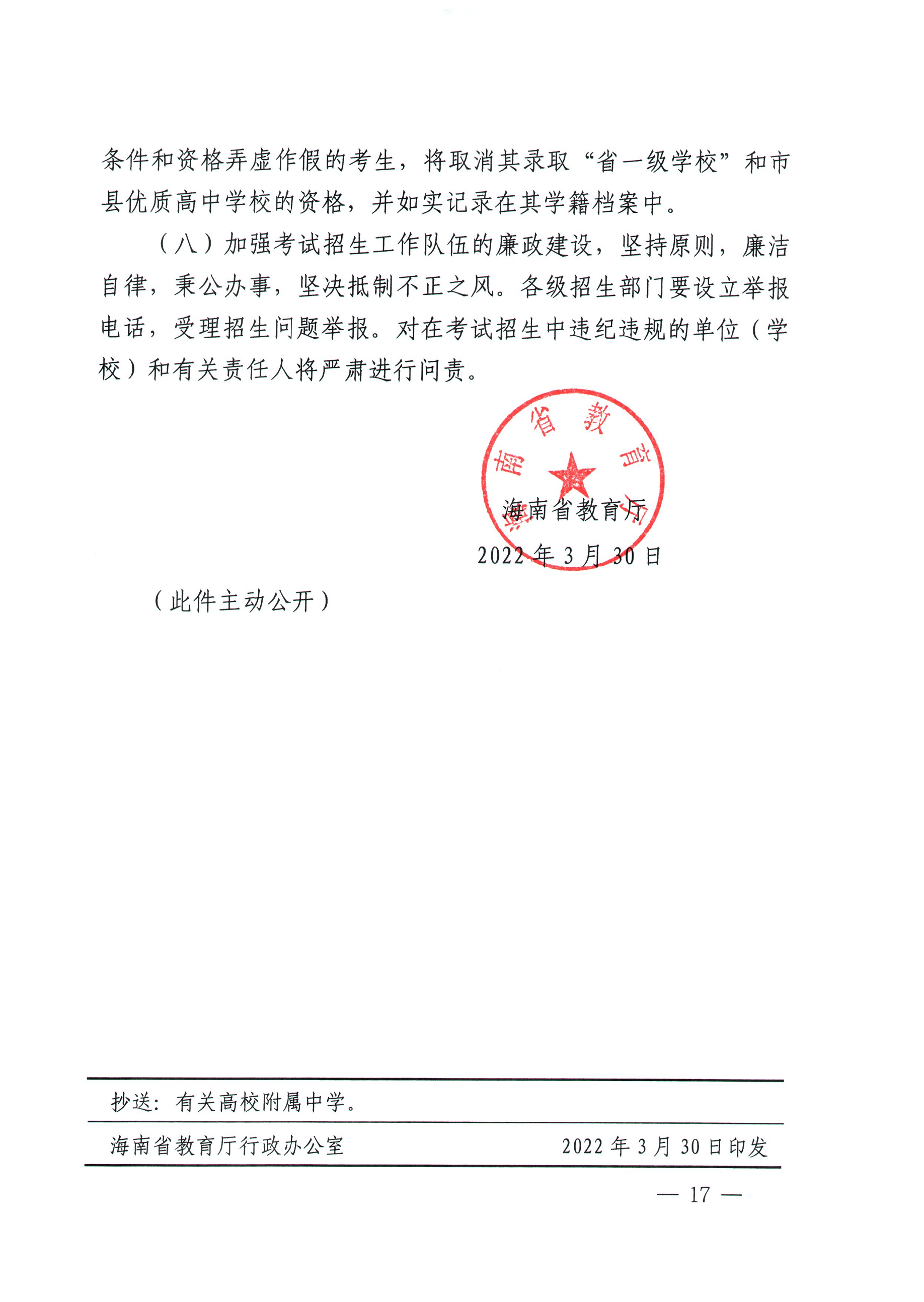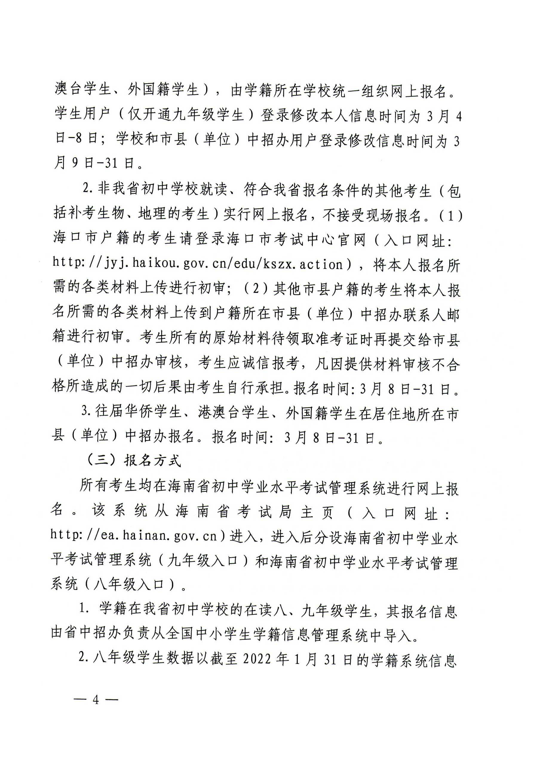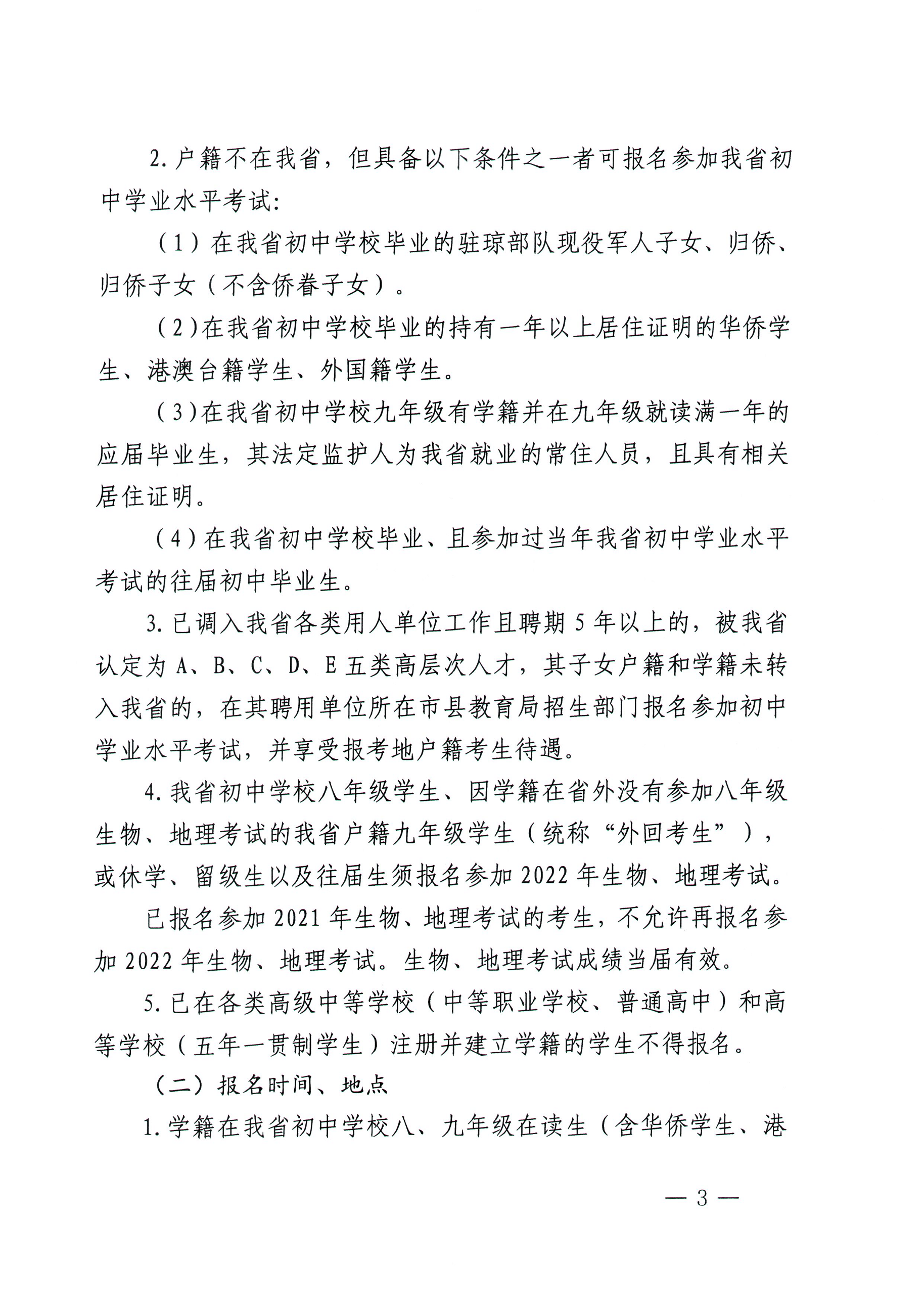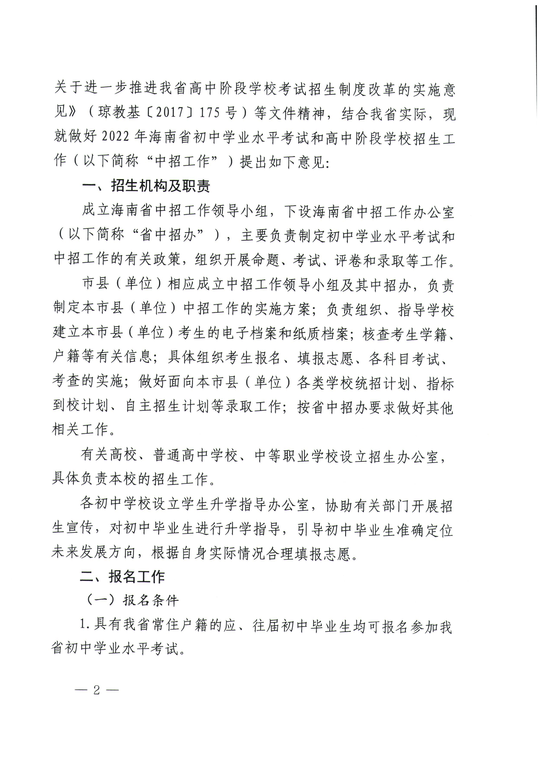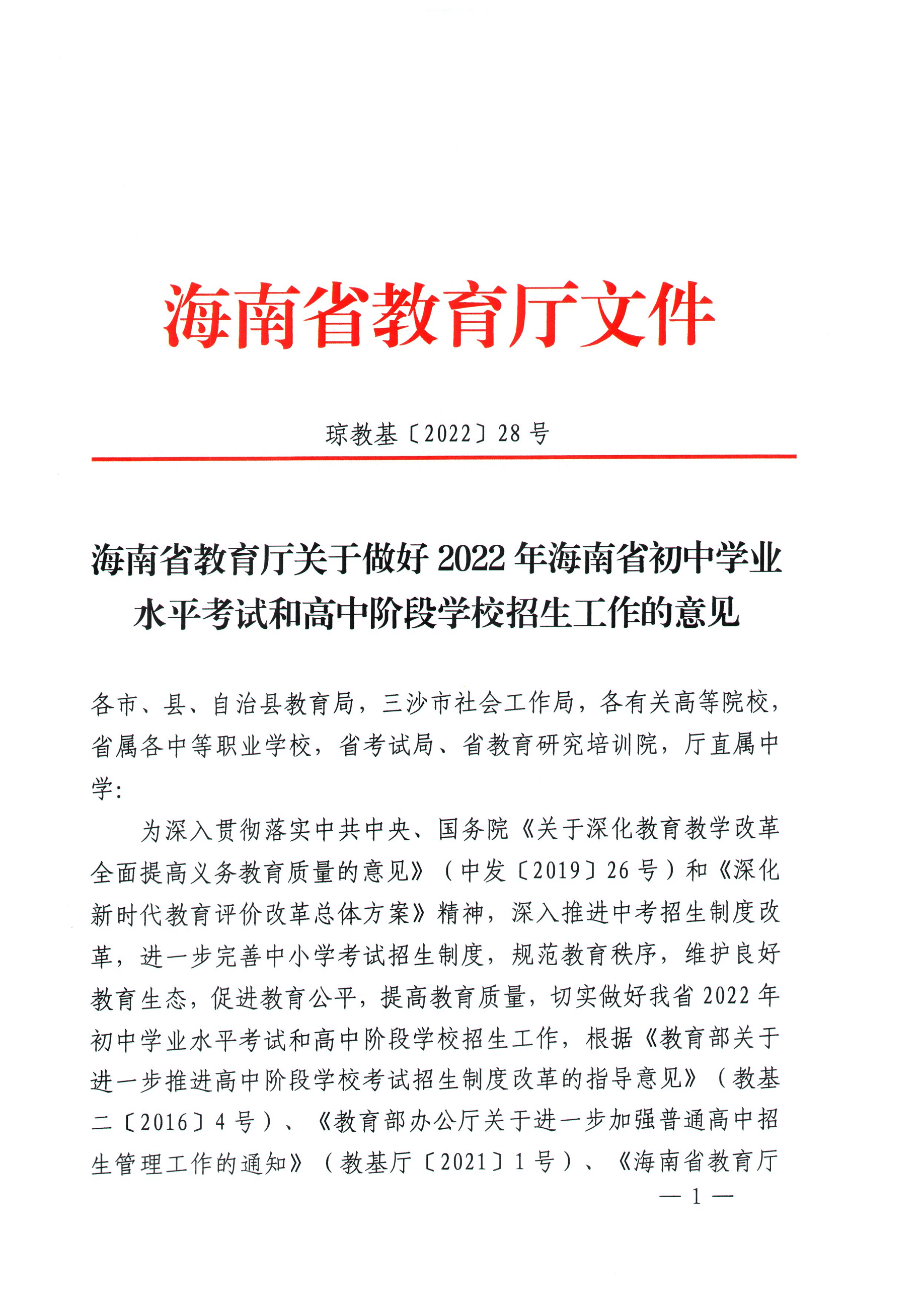 關(guān)于做好2022年海南省初中學(xué)業(yè)水平考試和高中階段學(xué)校招生工作的意見