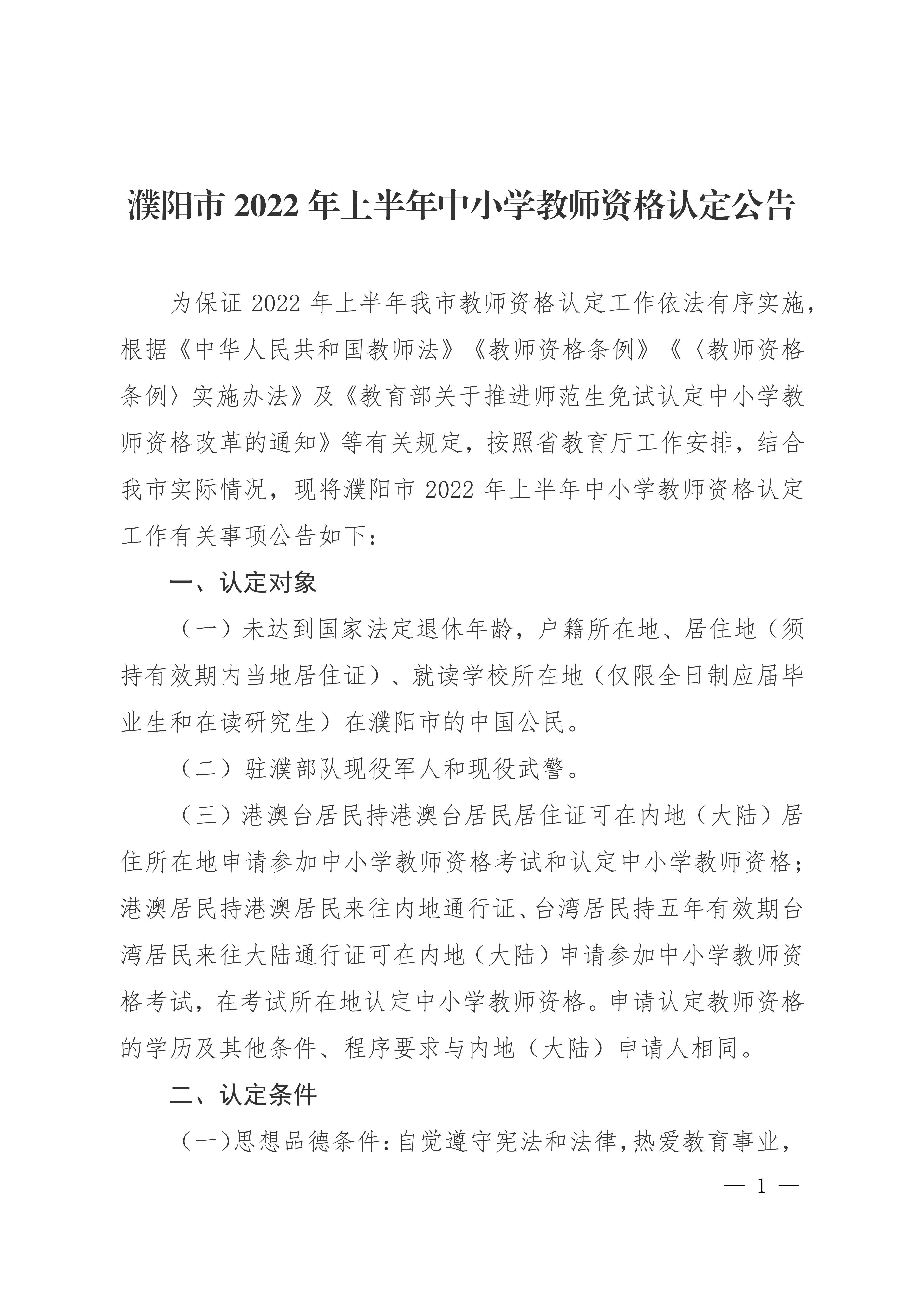 2022年上半年河南濮陽中小學(xué)教師資格認(rèn)定公告