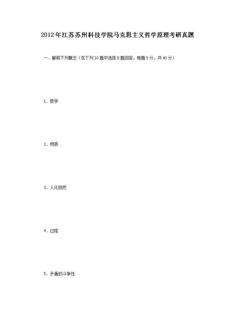 【文檔名稱】 2012年江蘇蘇州科技學(xué)院馬克思主義哲學(xué)原理考研真題(Word版).doc