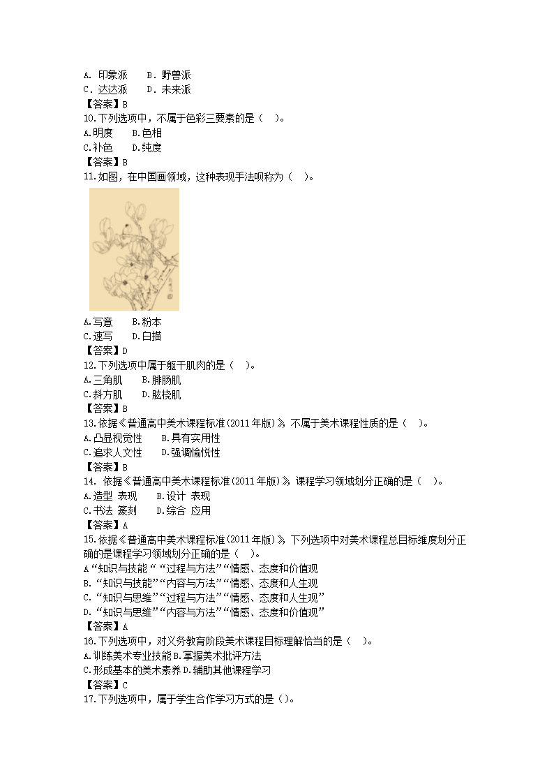 時(shí)間:2022-04-12 17:39:00 來(lái)源:無(wú)憂考網(wǎng) [字體:小 中 大]【文檔名稱(chēng)】 2020下半年江西教師資格初中美術(shù)學(xué)科知識(shí)與教學(xué)能力真題及答案(Word版).doc