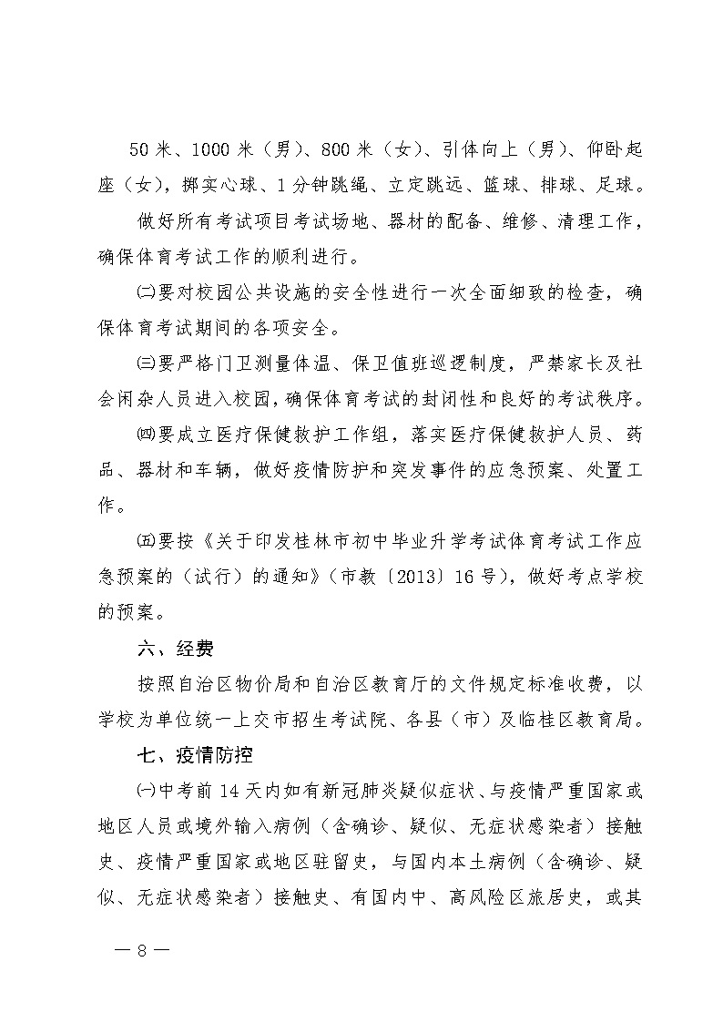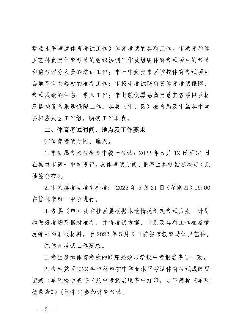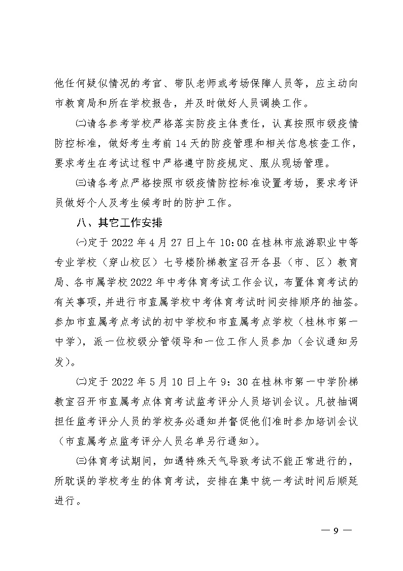 關(guān)于廣西桂林2022年初中學(xué)業(yè)水平考試體育考試工作安排的通知