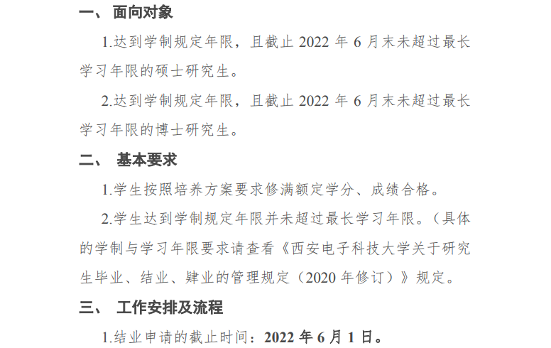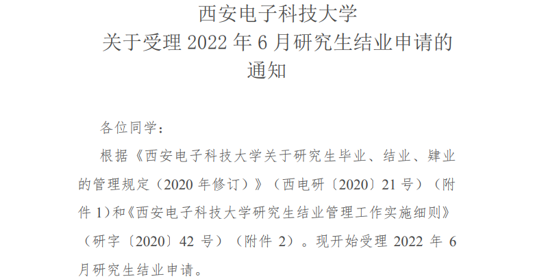 陜西:西安電子科技大學(xué)關(guān)于受理2022年6月研究生結(jié)業(yè)申請(qǐng)的通知