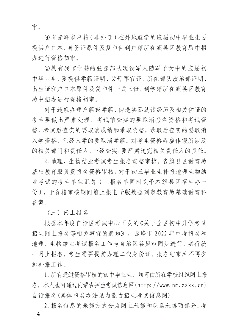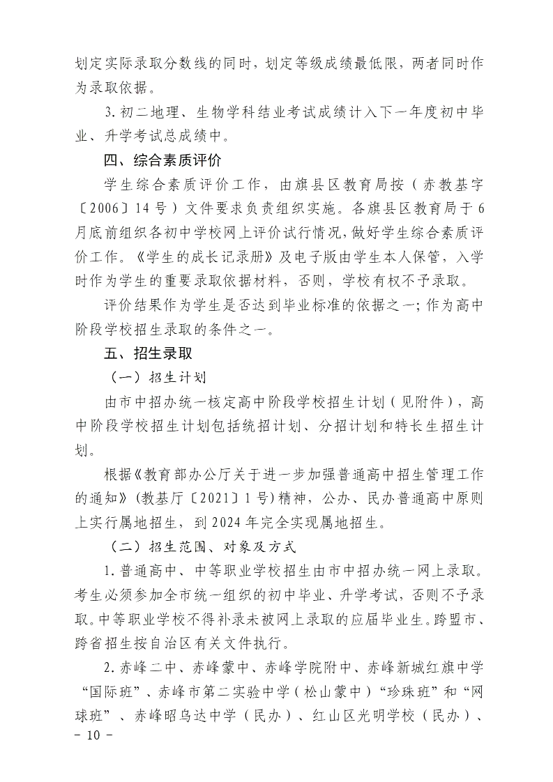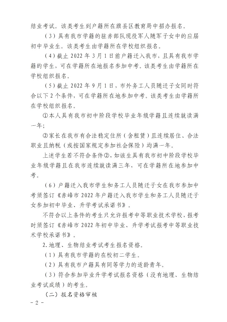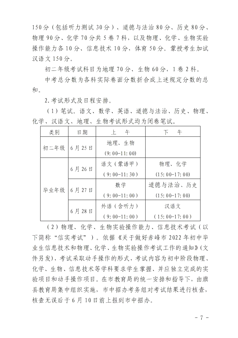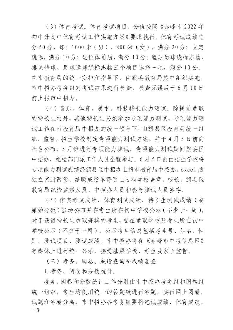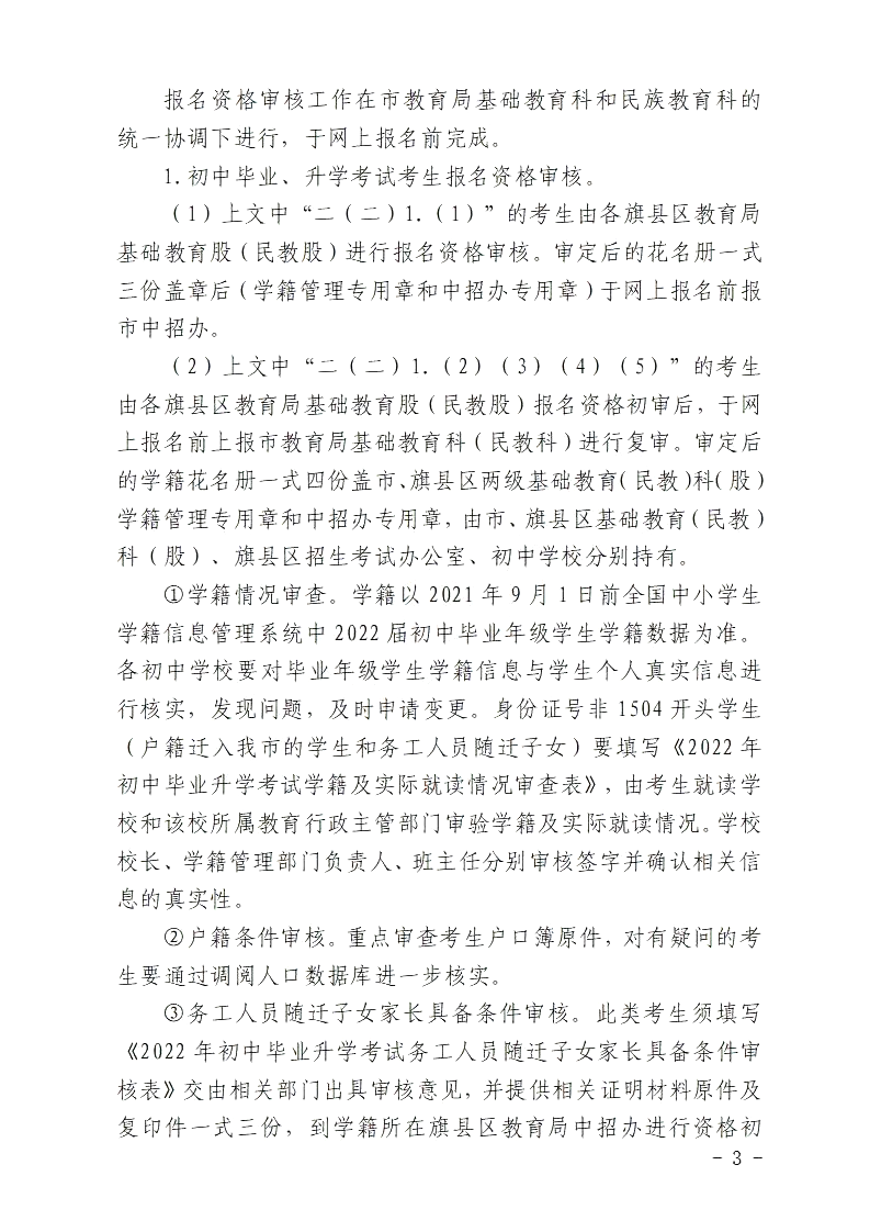 內(nèi)蒙古赤峰2022年初中畢業(yè)、升學(xué)考試及高中階段學(xué)校招生工作方案