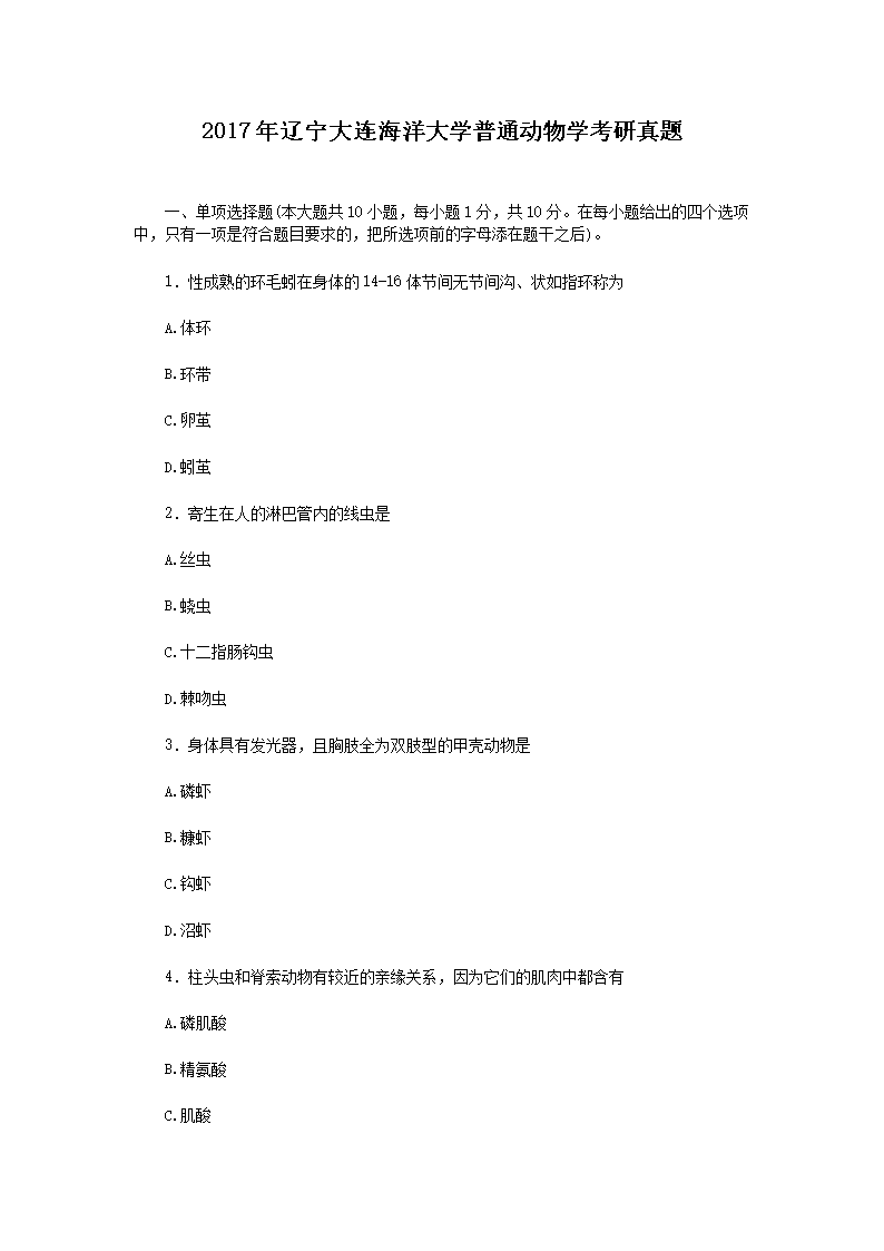 【文檔名稱】 2017年遼寧大連海洋大學(xué)普通動(dòng)物學(xué)考研真題(Word版).doc