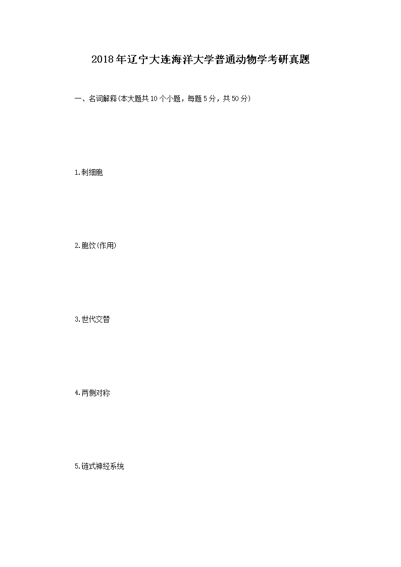 【文檔名稱】 2018年遼寧大連海洋大學(xué)普通動物學(xué)考研真題(Word版).doc
