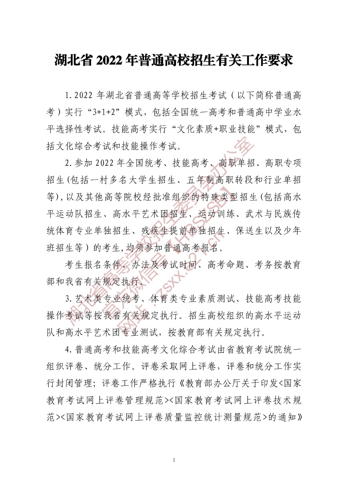 憂考網(wǎng)從湖北招生信息網(wǎng)獲悉,2022年湖北普通高校招生有關工作要求已公布,具體詳情如下: