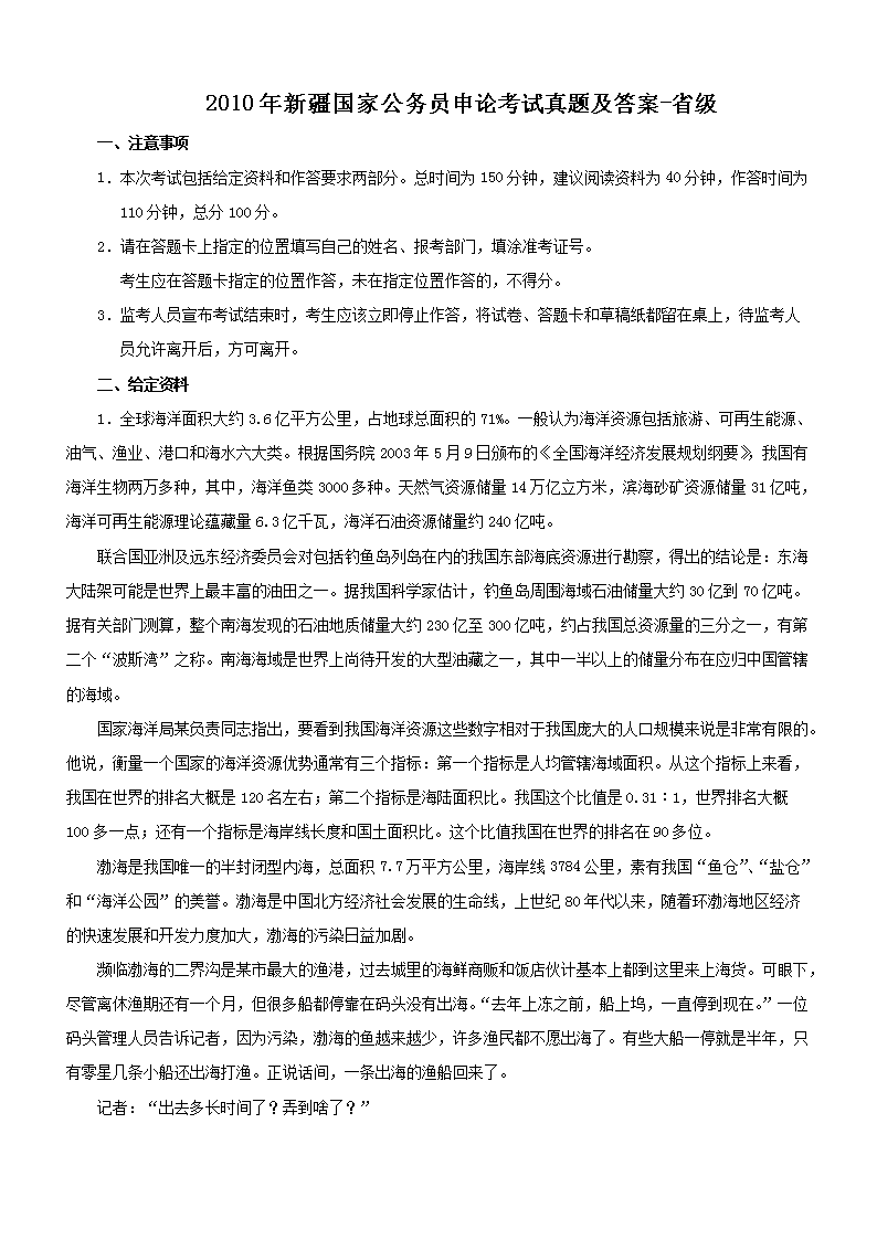 【文檔名稱】 2010年新疆國家公務(wù)員申論考試真題及答案-省級(Word版).doc