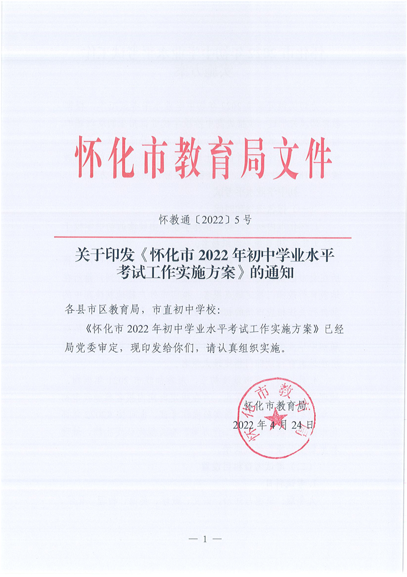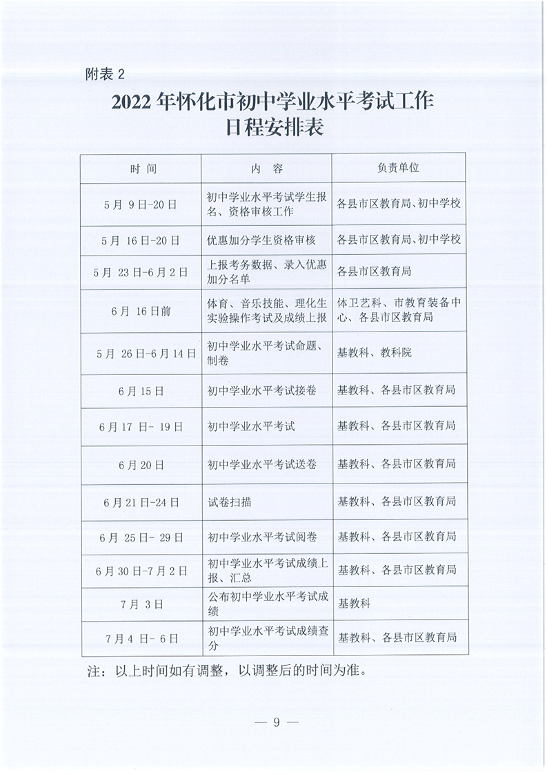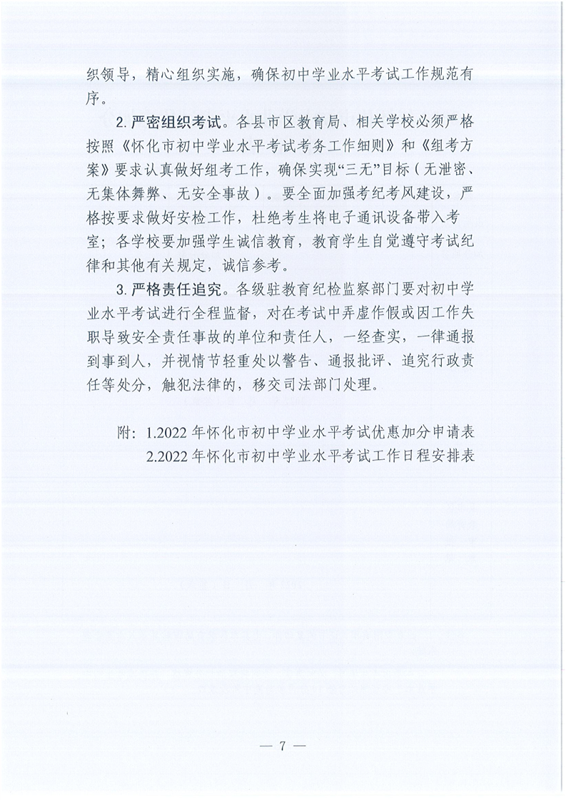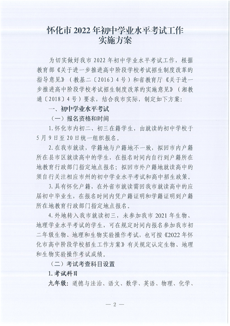 湖南懷化2022年初中學業(yè)水平考試工作實施方案的通知