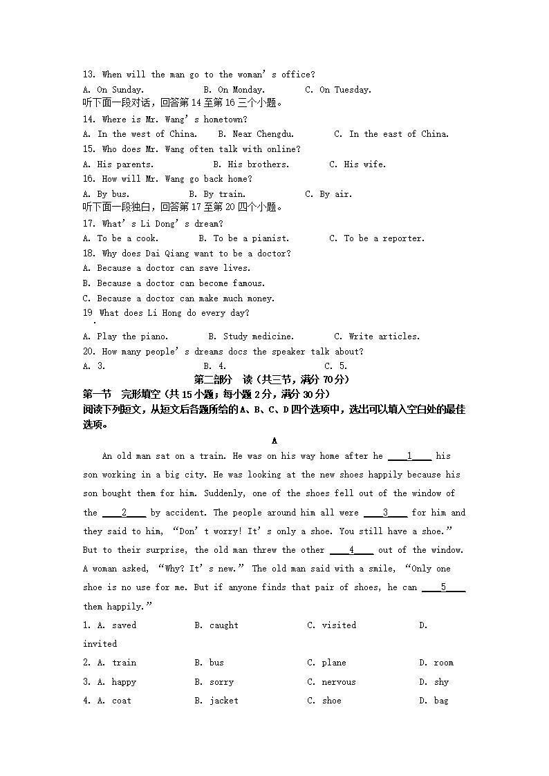 【文檔預(yù)覽】 無憂考網(wǎng)整理發(fā)布2022年四川德陽中考英語真題及答案(Word版),前五頁預(yù)覽如下: