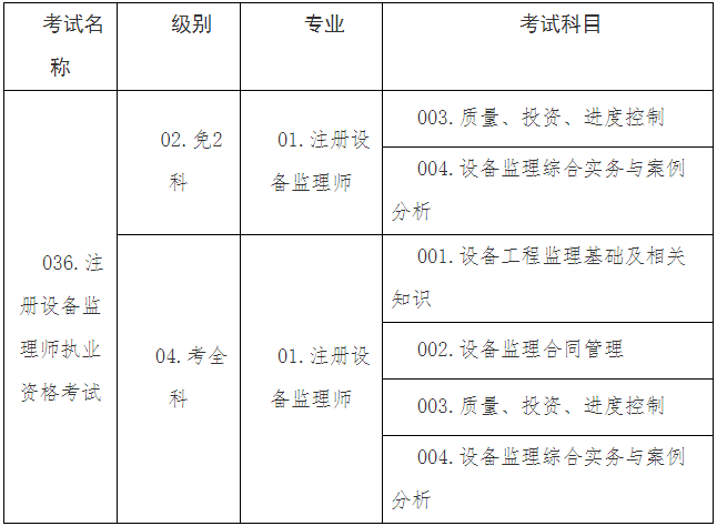 附件:2. 注冊設(shè)備監(jiān)理師執(zhí)業(yè)資格考試代碼及名稱表