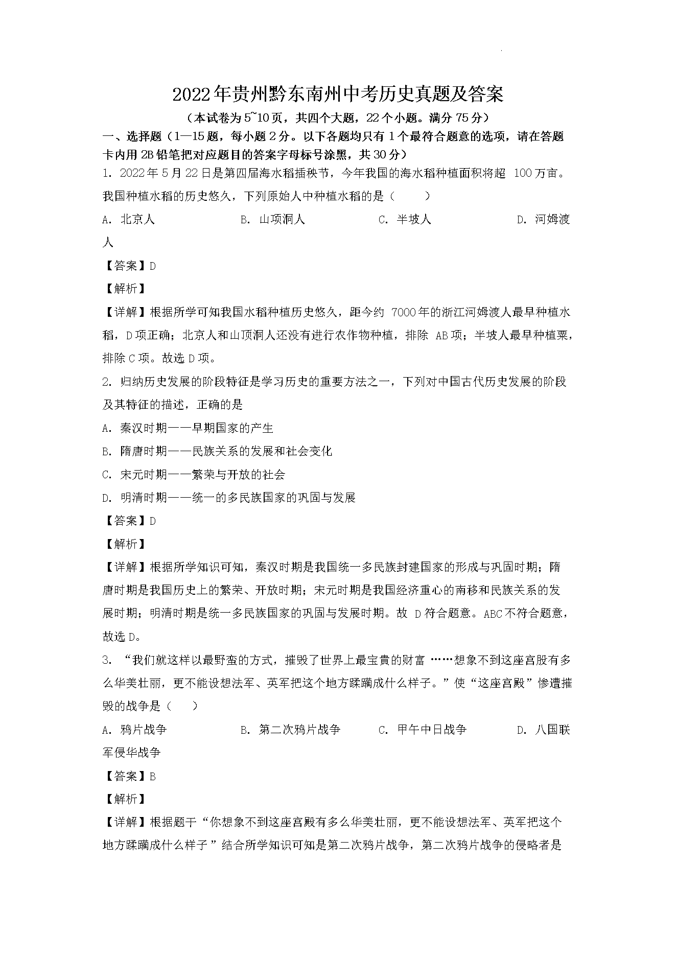 【文檔名稱】 2022年貴州黔東南州中考?xì)v史真題及答案(Word版).doc