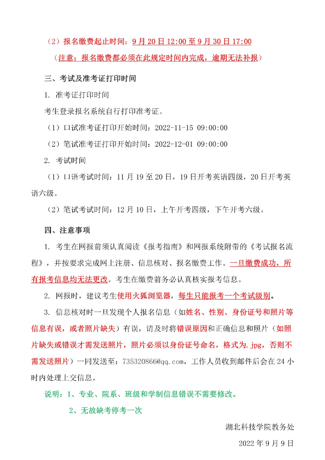 2022年下半年湖北科技學(xué)院英語(yǔ)四六級(jí)考試報(bào)名通知
