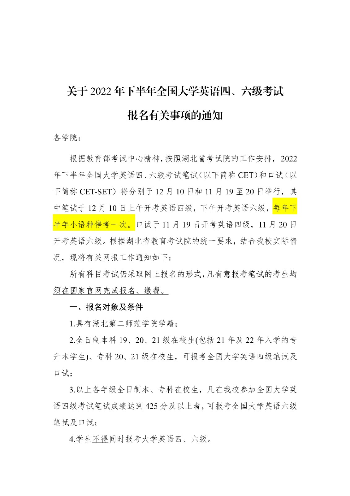 原文標題:關(guān)于2022年下半年全國大學(xué)英語四、六級考試 報名有關(guān)事項的通知