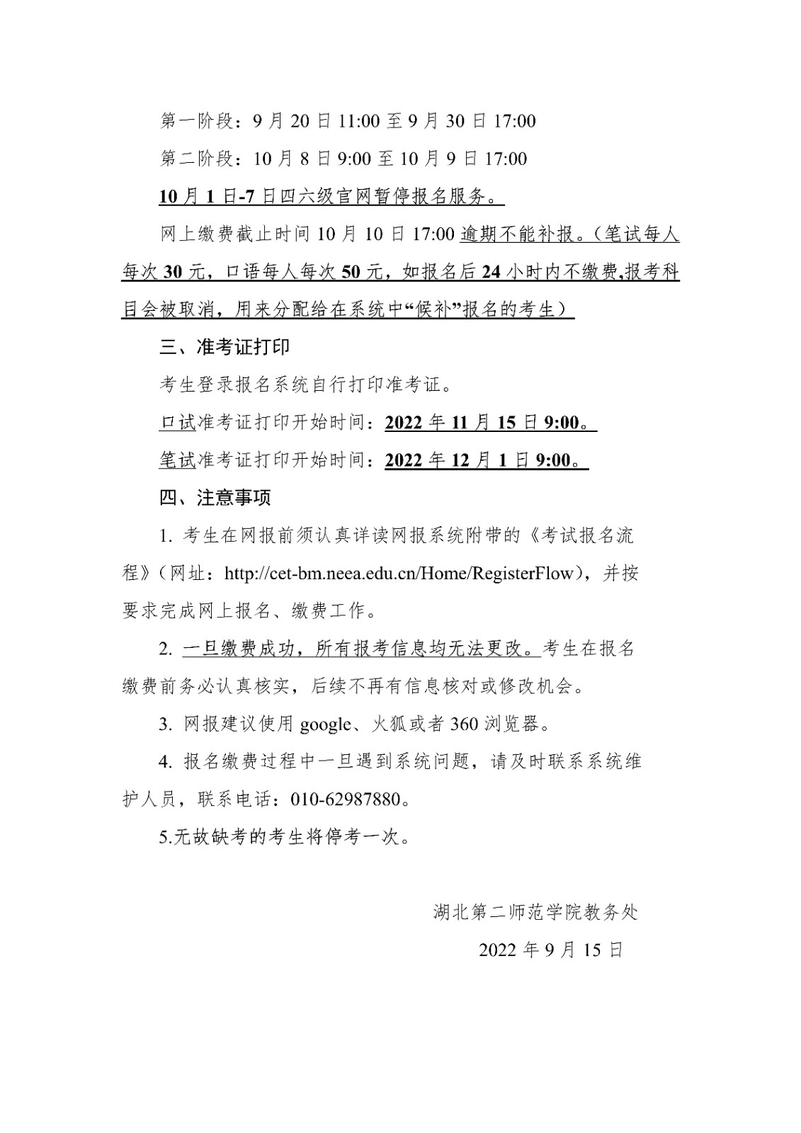 2022年下半年湖北第二師范學(xué)院外國語學(xué)院英語四、六級考試 報名有關(guān)事項的通知