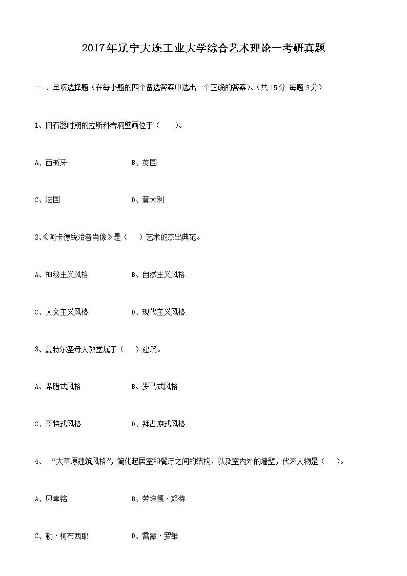 【文檔名稱】 2017年遼寧大連工業(yè)大學(xué)綜合藝術(shù)理論一考研真題(Word版).doc
