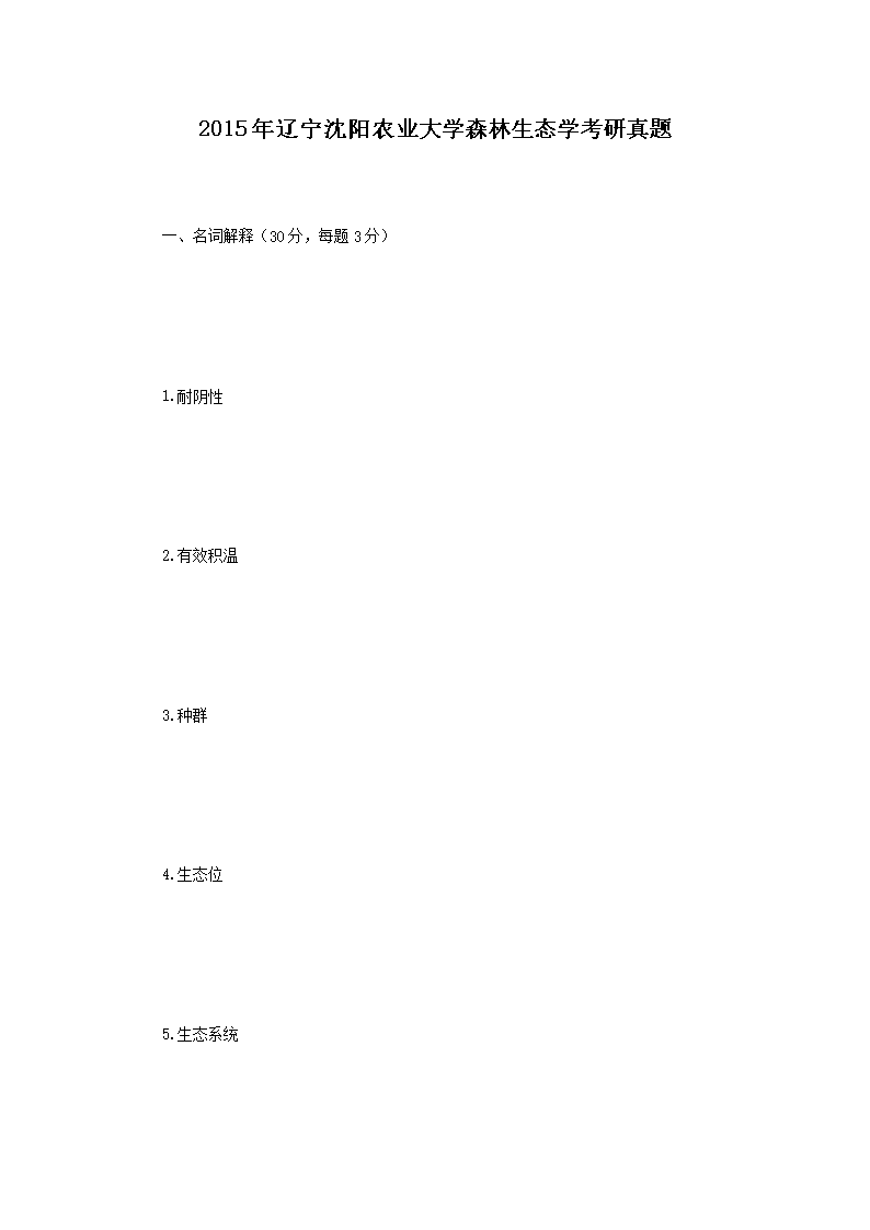 2015年遼寧沈陽(yáng)農(nóng)業(yè)大學(xué)森林生態(tài)學(xué)考研真題(Word版)