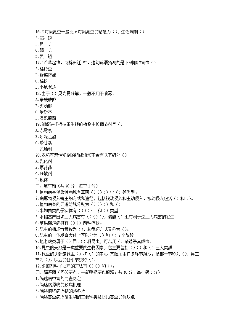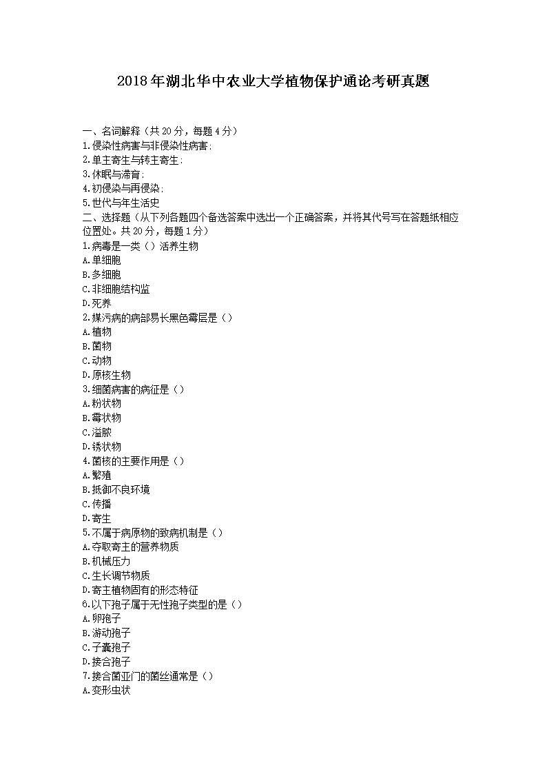 2018年湖北華中農(nóng)業(yè)大學(xué)植物保護(hù)通論考研真題(Word版)