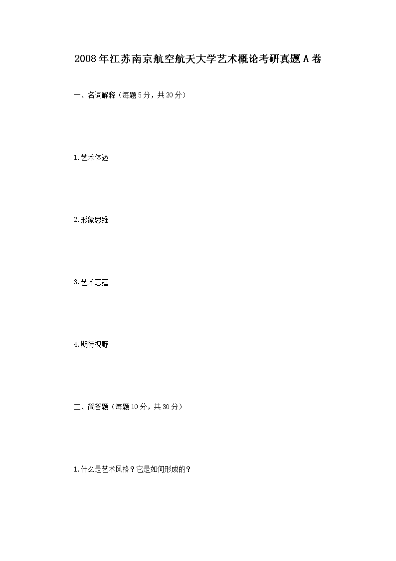【文檔名稱】 2008年江蘇南京航空航天大學(xué)藝術(shù)概論考研真題A卷(Word版).doc