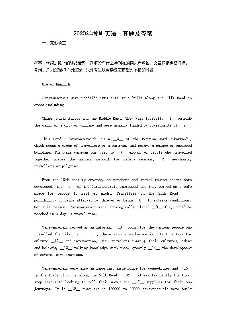 【文檔名稱】 2023年考研英語(yǔ)一真題及答案(Word版).doc